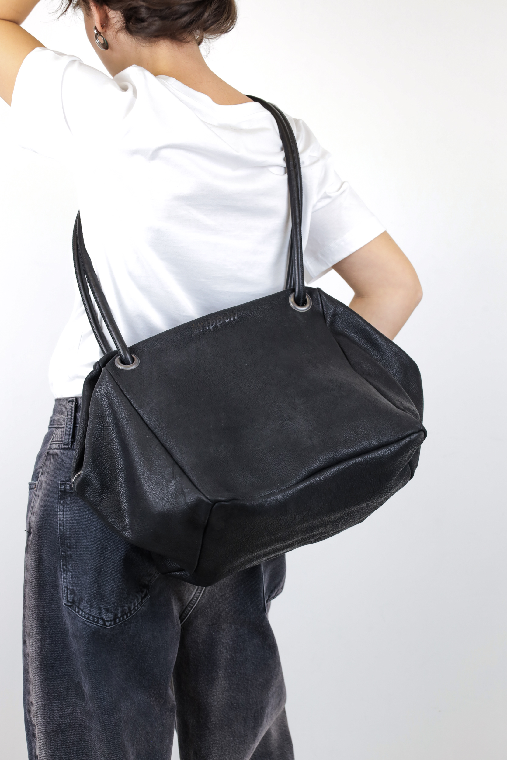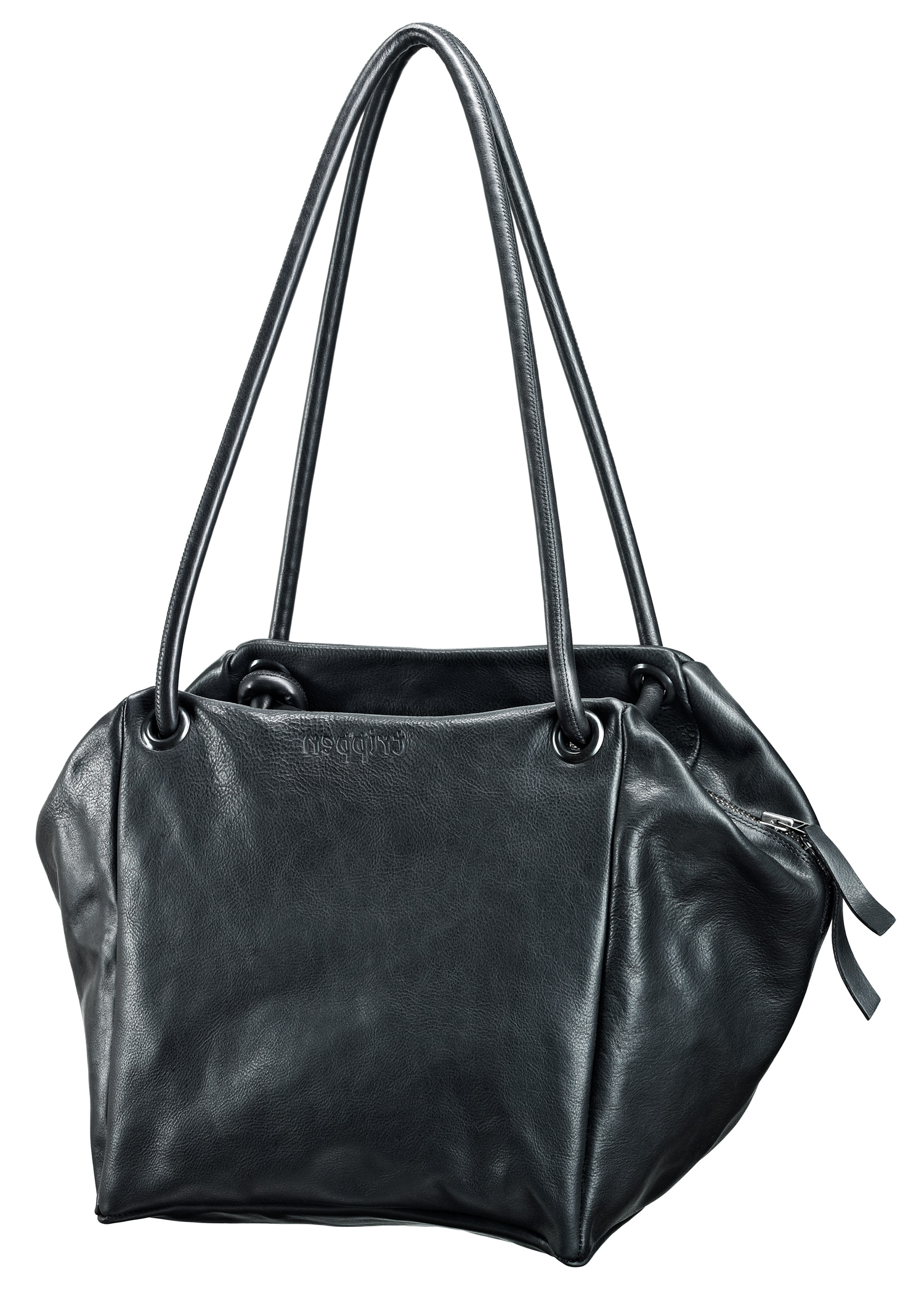 This bag was developed from a cube, which can be opened by a zip running down the middle. The padded strap passes through the eyelets so that the bag can also be worn as a backpack, leaving both hands free. The bag has one side pocket with zipper and is unlined.