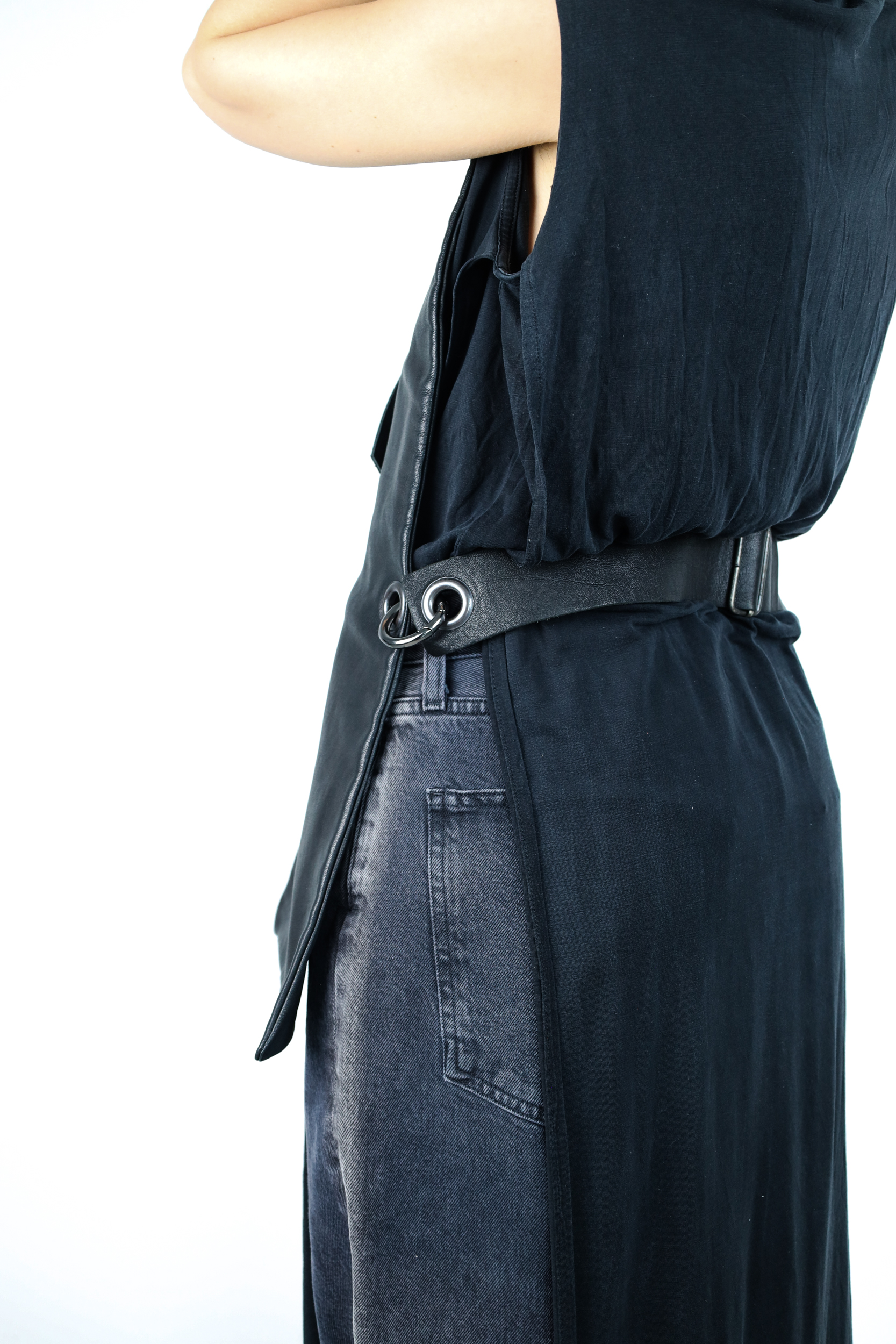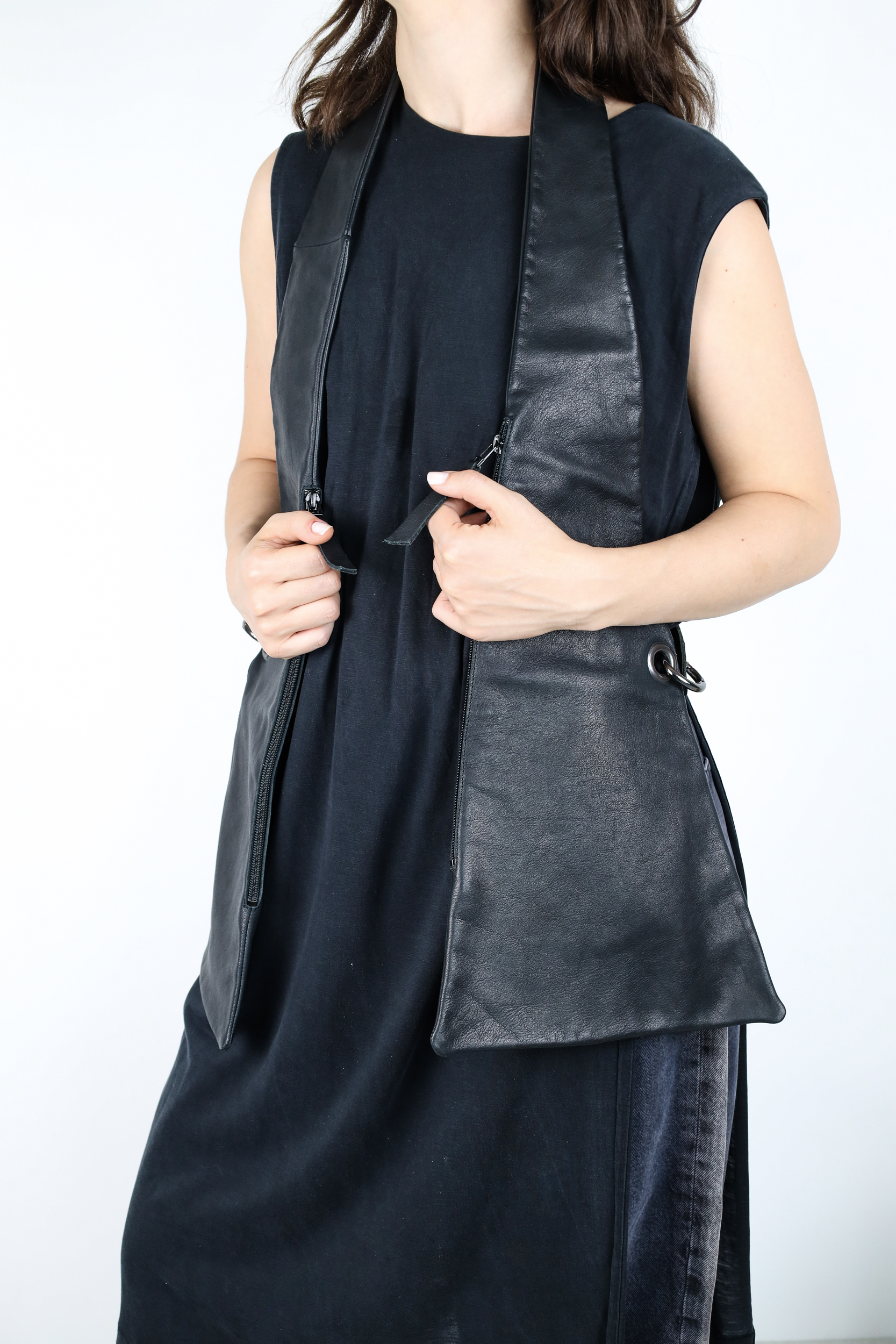 Flexbody is offering flexible and playful ways of wearing. Using the adjustable belt transforms it to a vest, the zippers provide access from different positions.