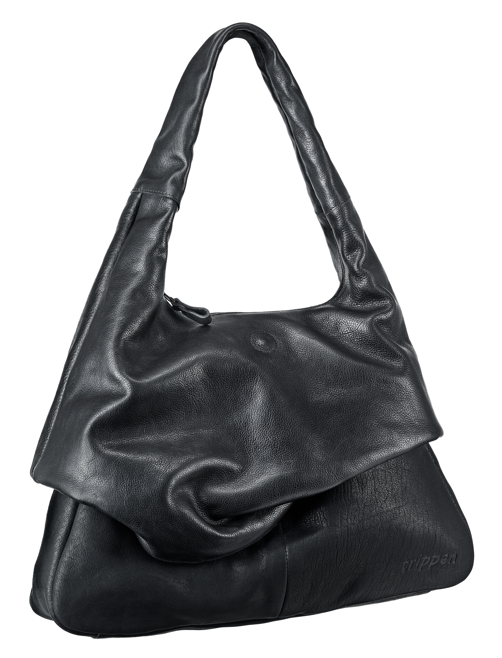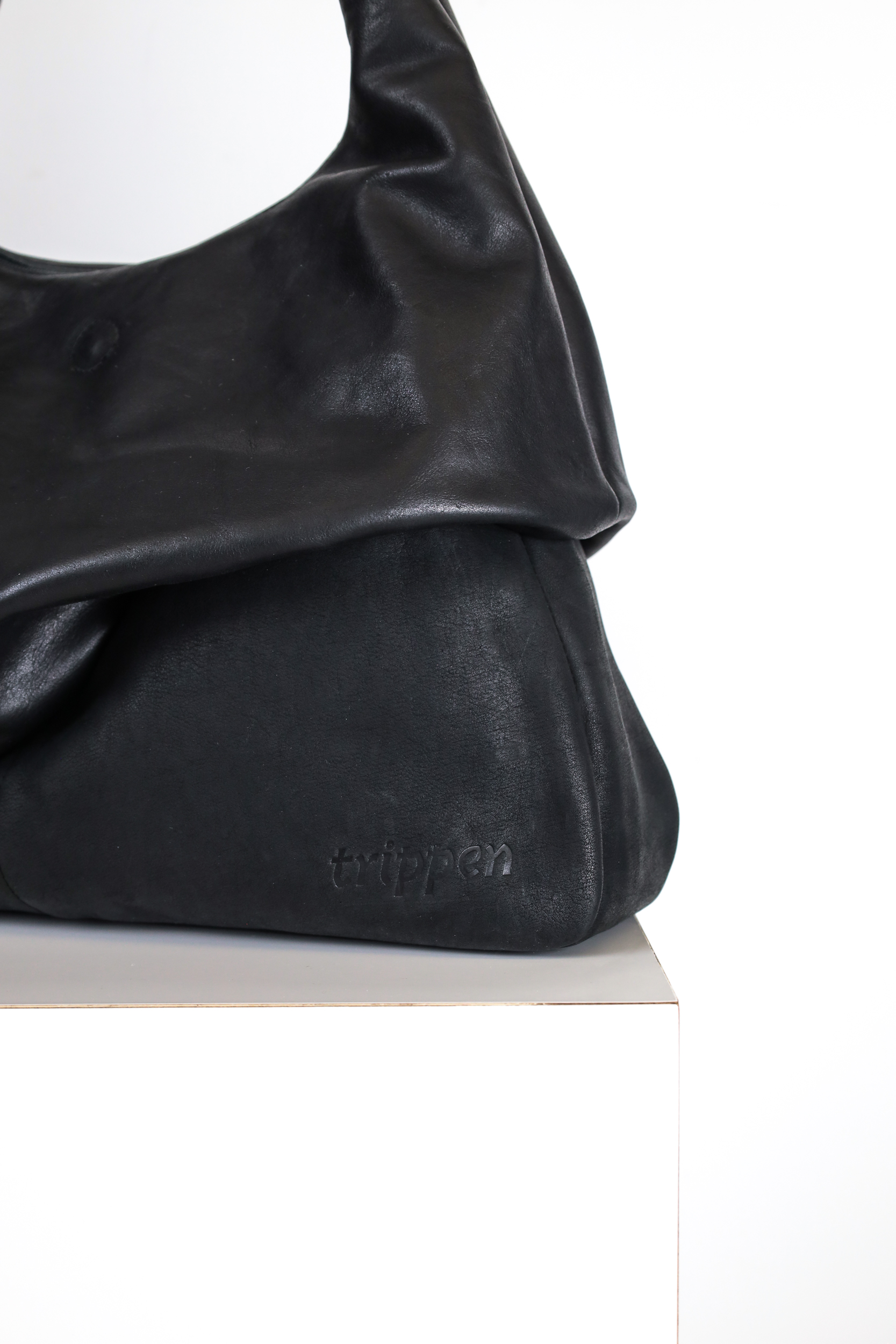 Trippen Bags Glazed B | Tiz Black In Stock: One Size Add To Cart Soft And Spacious Hobo Bag Featuring Three Hidden Practical Pockets Nestled Between The External And Internal Layers. The Blend Of Two Leathers With Contrasting Finishes – One Shiny And The Other Matte – Enhances The Glazing Effect. Body Of The Bag: W 40cm