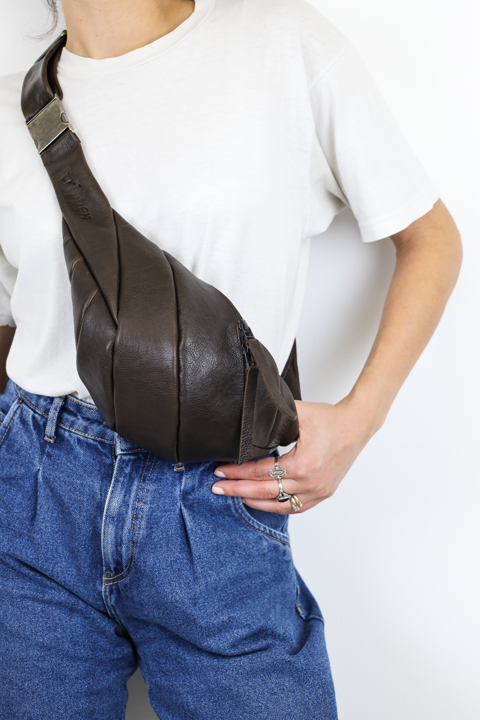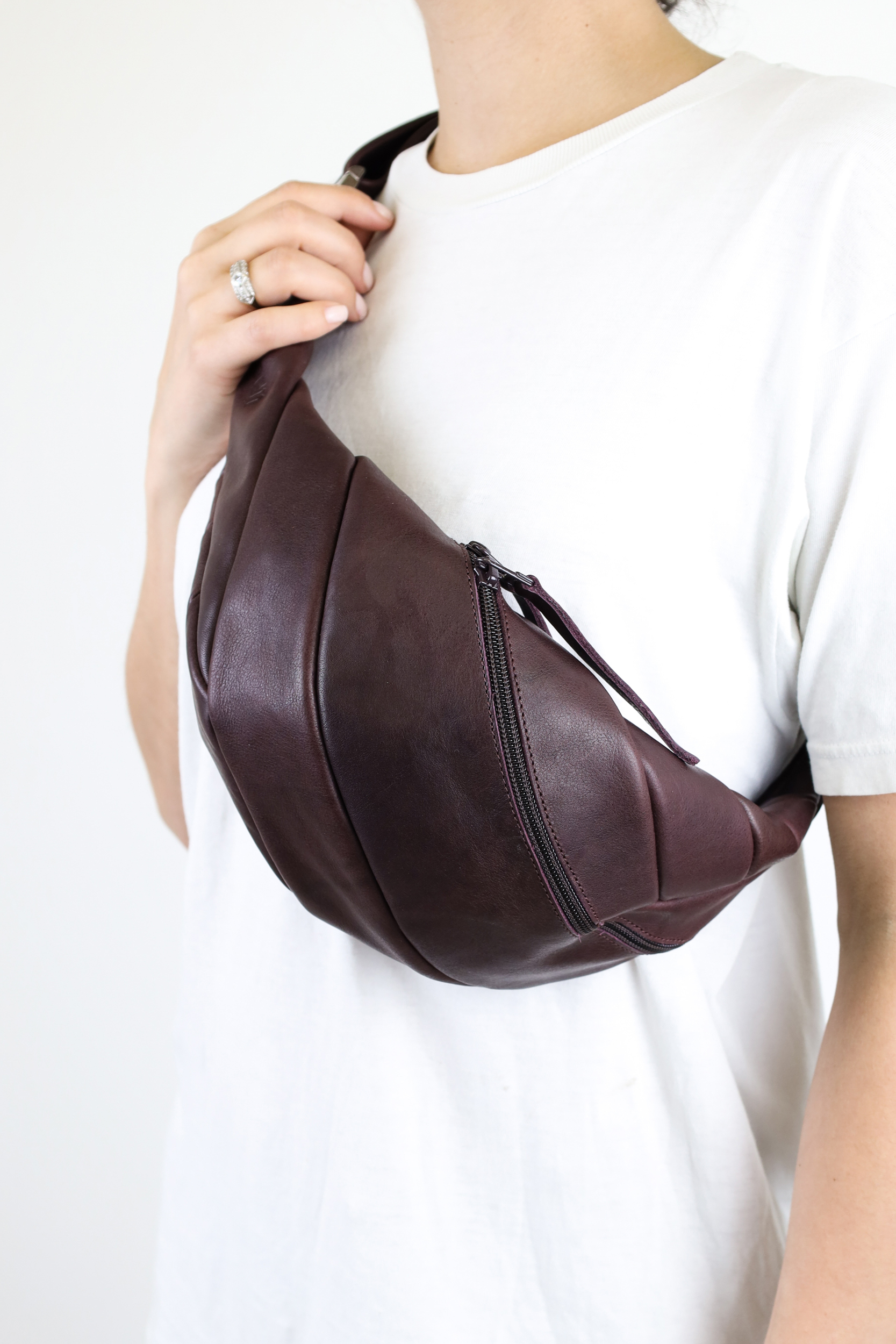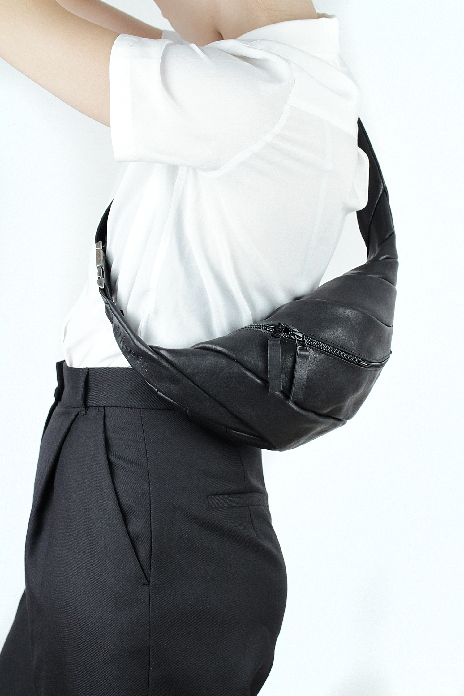 Fanny Pack with elegantly curved lines, diagonal zip on the front and a high-quality metal clip fastener. Due to the adjustable strap, the bag offers various carrying options.