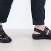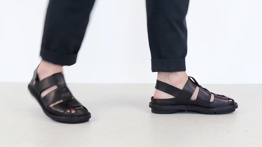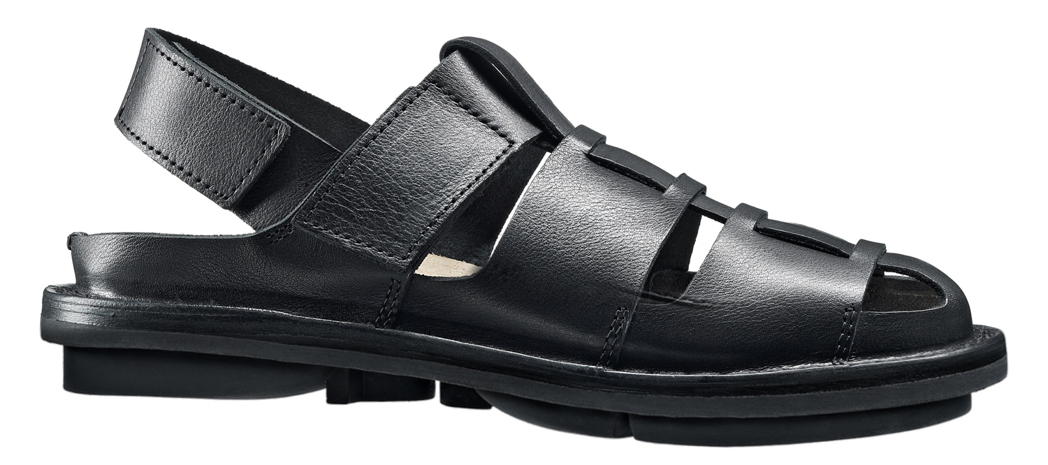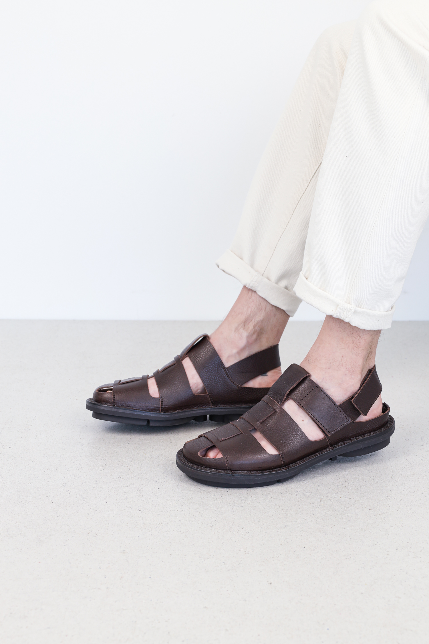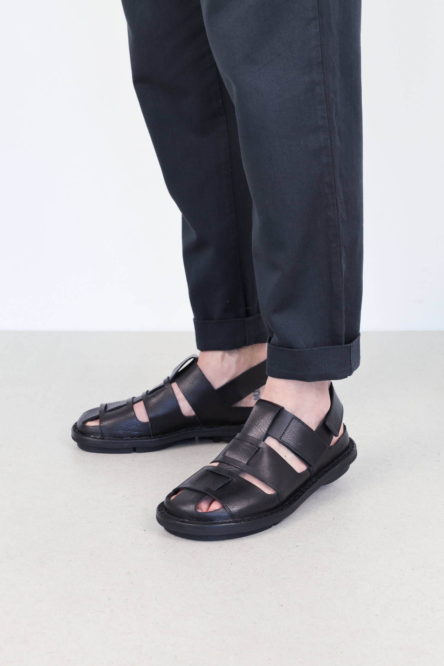 Modern Fisherman-style inspired sandal with Velcro closures on the instep and around the heel.
