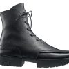 Unisex lace-up boot with interleaved design and top-stitching, framing the interplay of the outer layer.