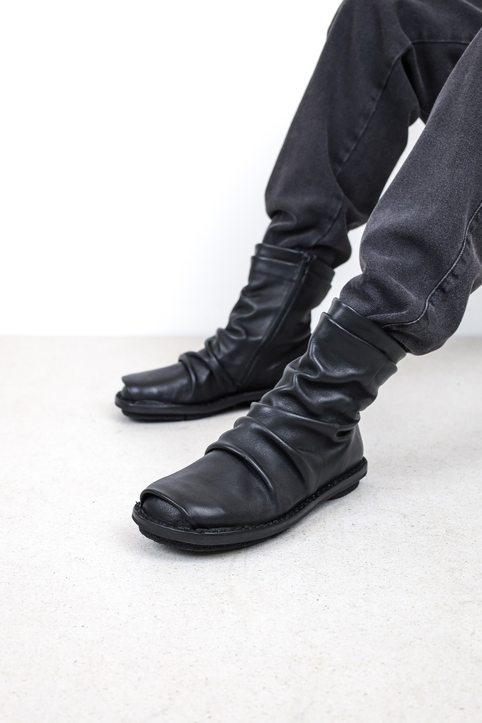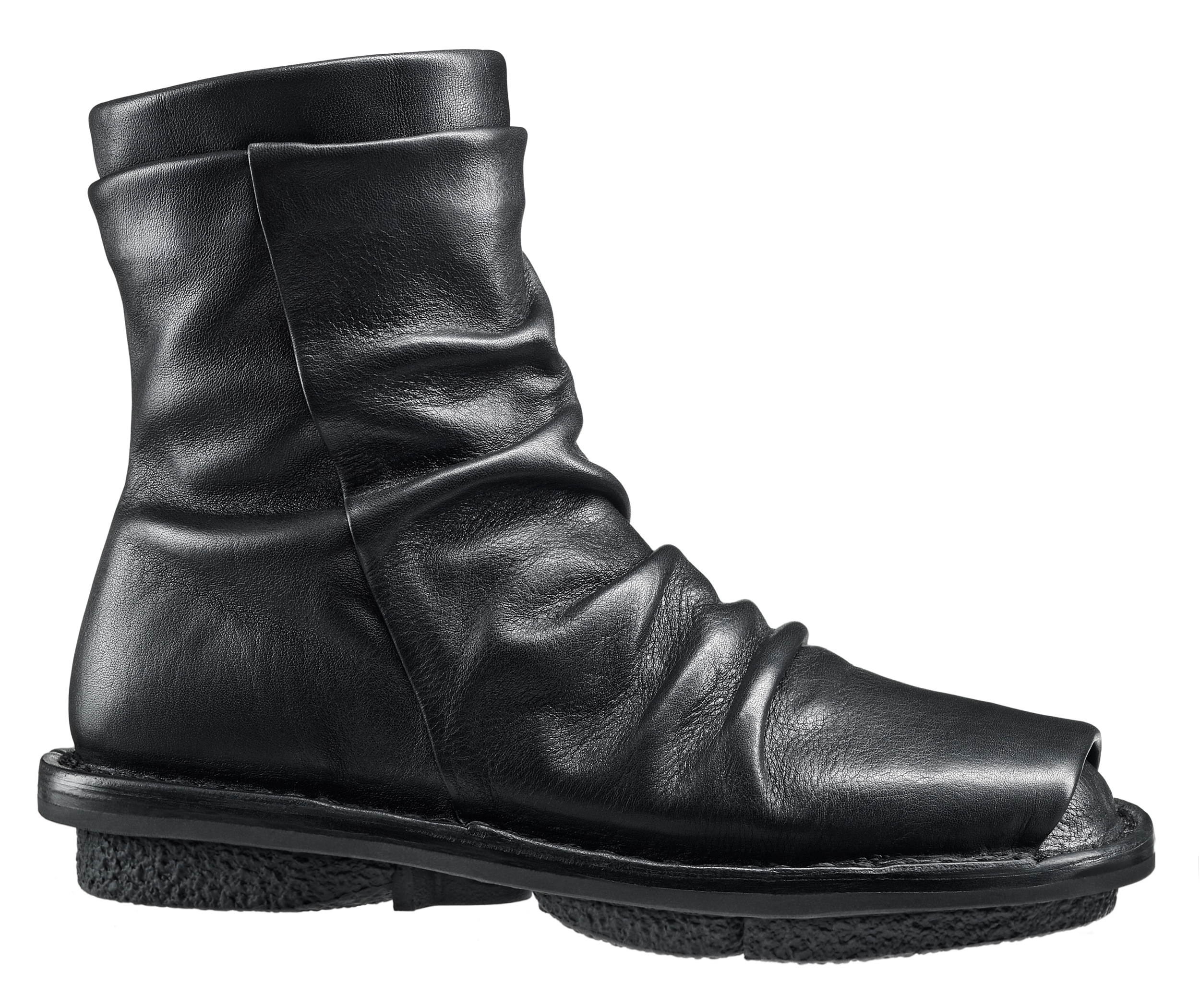 Between two simple folded edges over the toe and at the end of the shaft, the shaft lies in flowing folds.