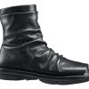Between two simple folded edges over the toe and at the end of the shaft, the shaft lies in flowing folds.