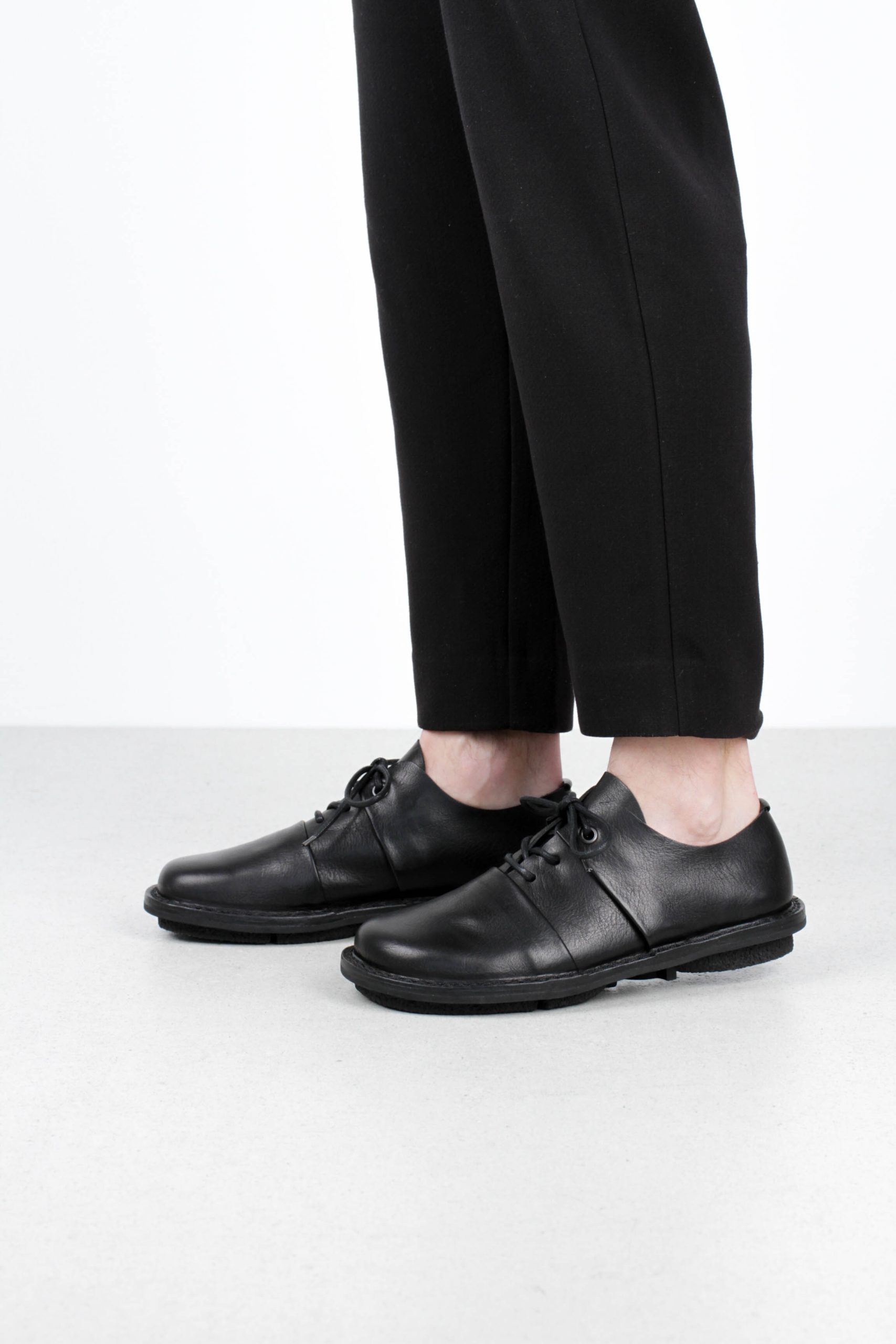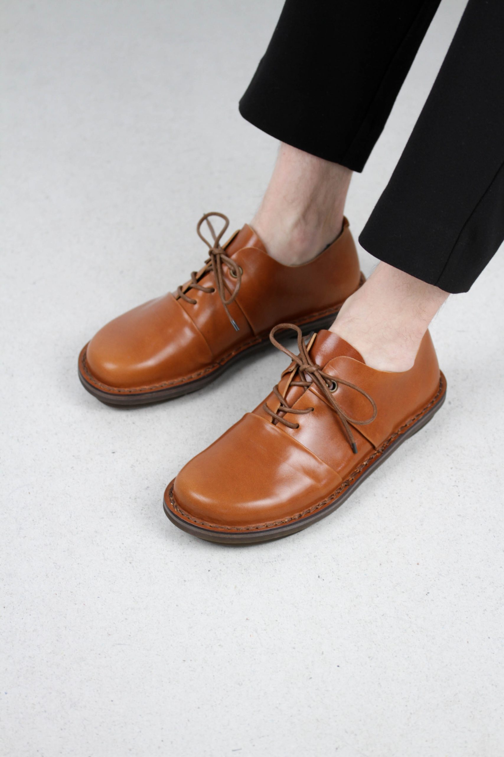 A seamless, low-lying strip simply passes over the instep of this lace-up shoe.
