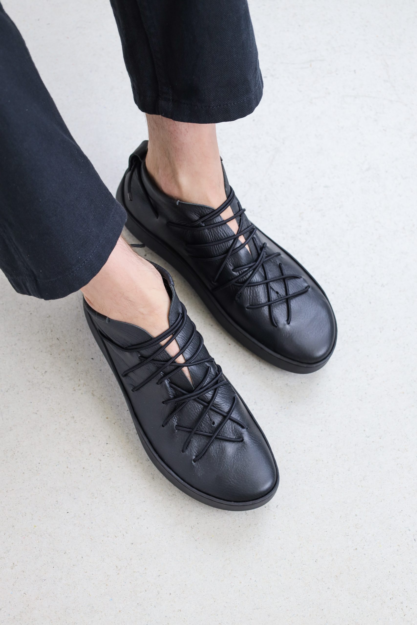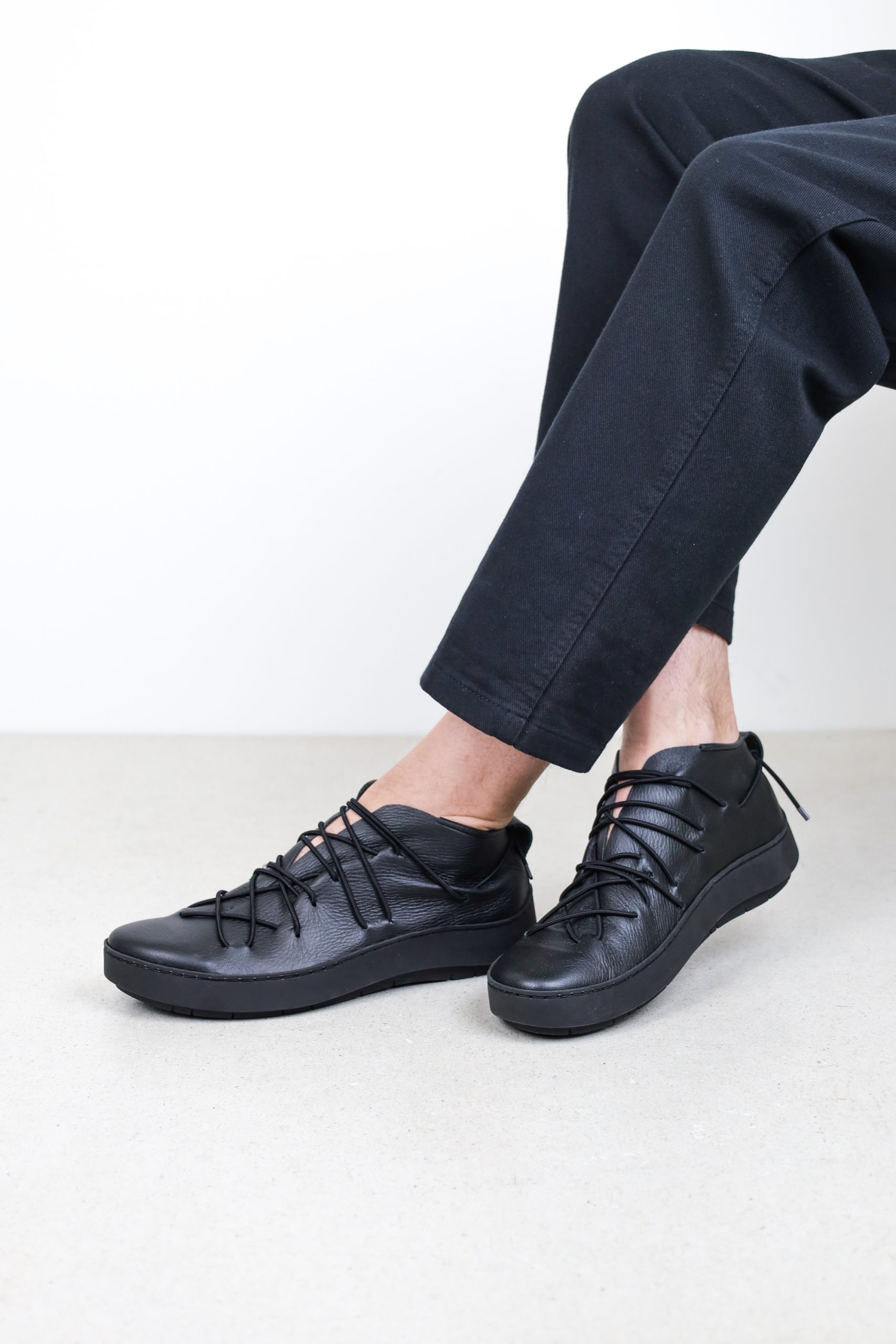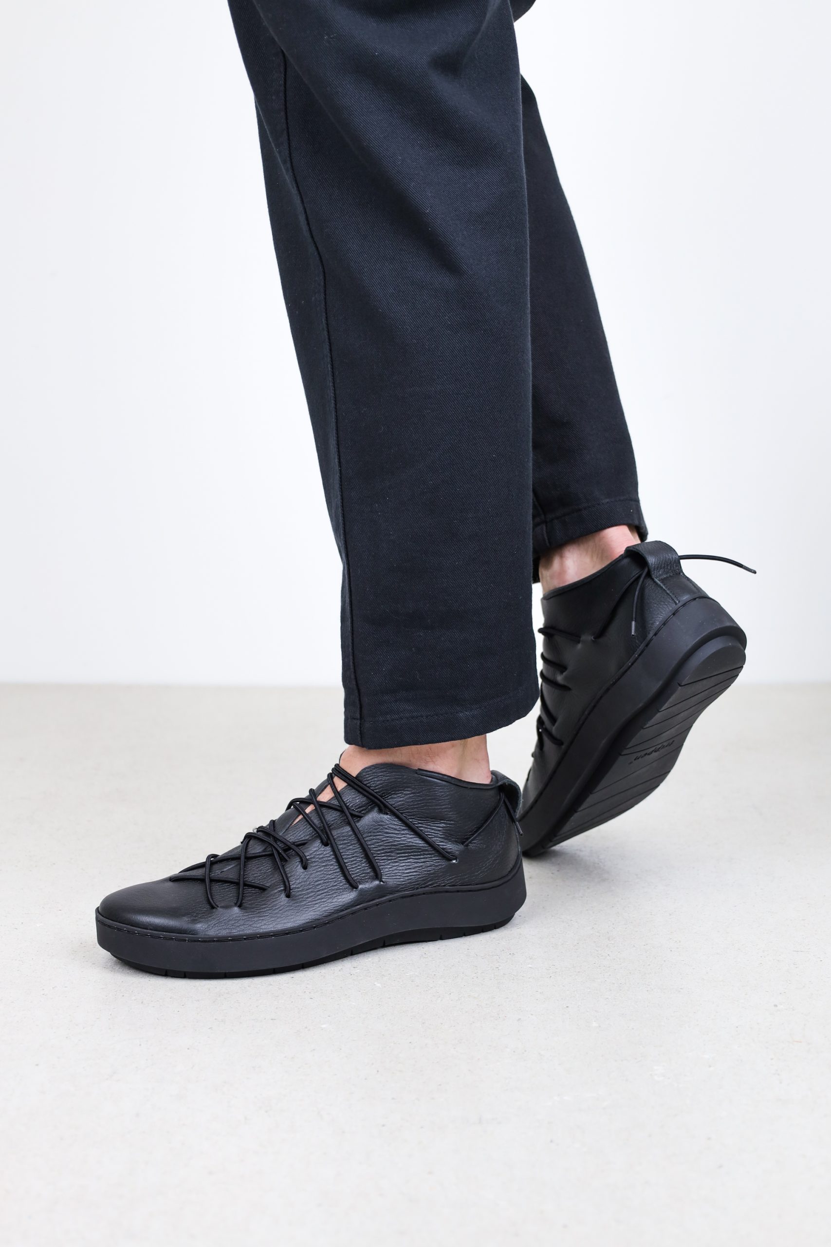 The criss-cross and intertwined elasticated laces are the defining design element of this model and provide support over the soft deerskin.