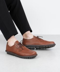 Men’s version of this style resembling a classic loafer with a decorative fringe décor on the vamp. The raw seam around the vamp and the construction without a toe cap produce a slightly pointier shape. An elastic strap runs across the instep, neatly hidden beneath the fringe detail.