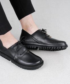 Sporty shoe with velcro fastening, decorative metal loop and dynamic lines.