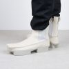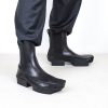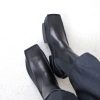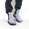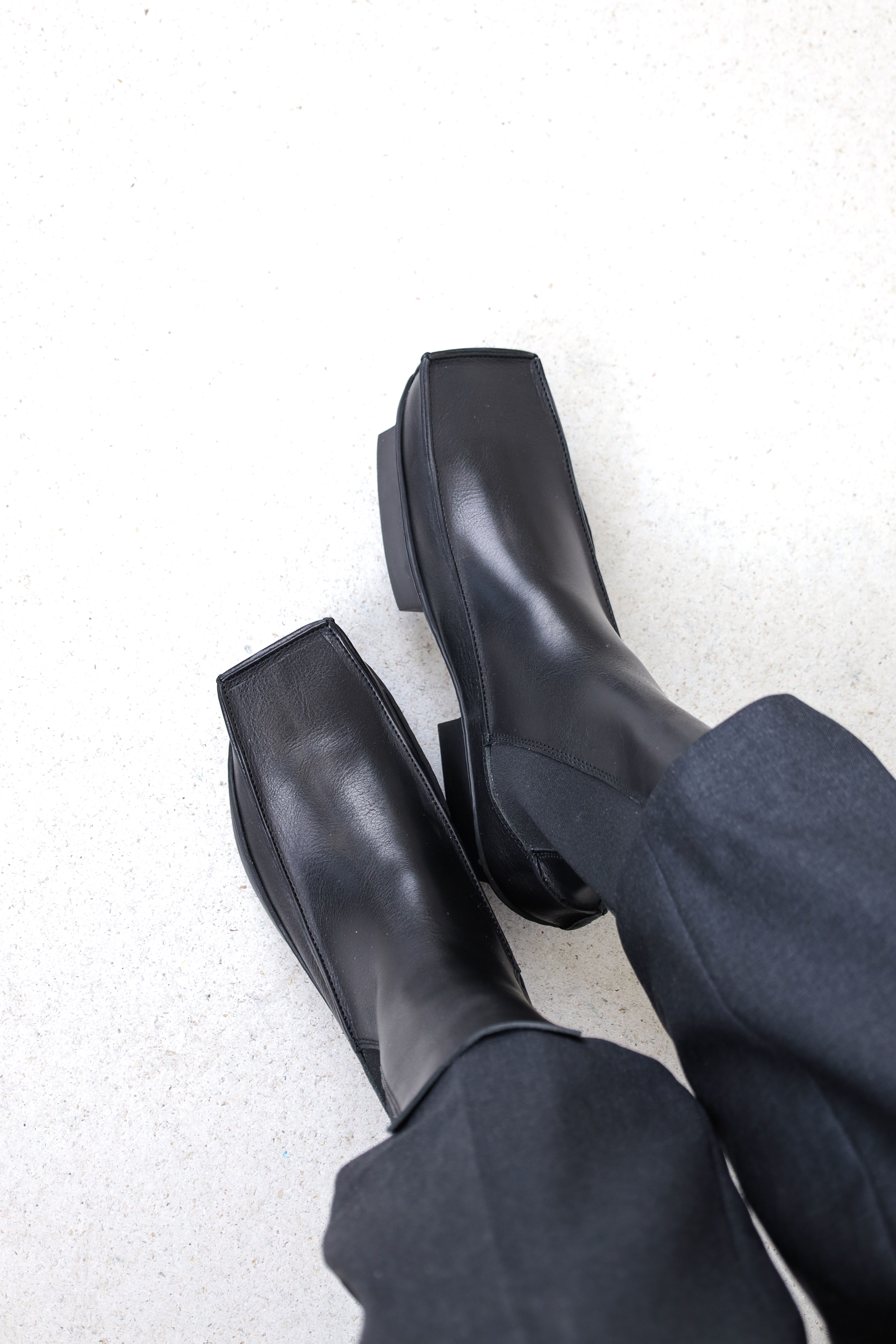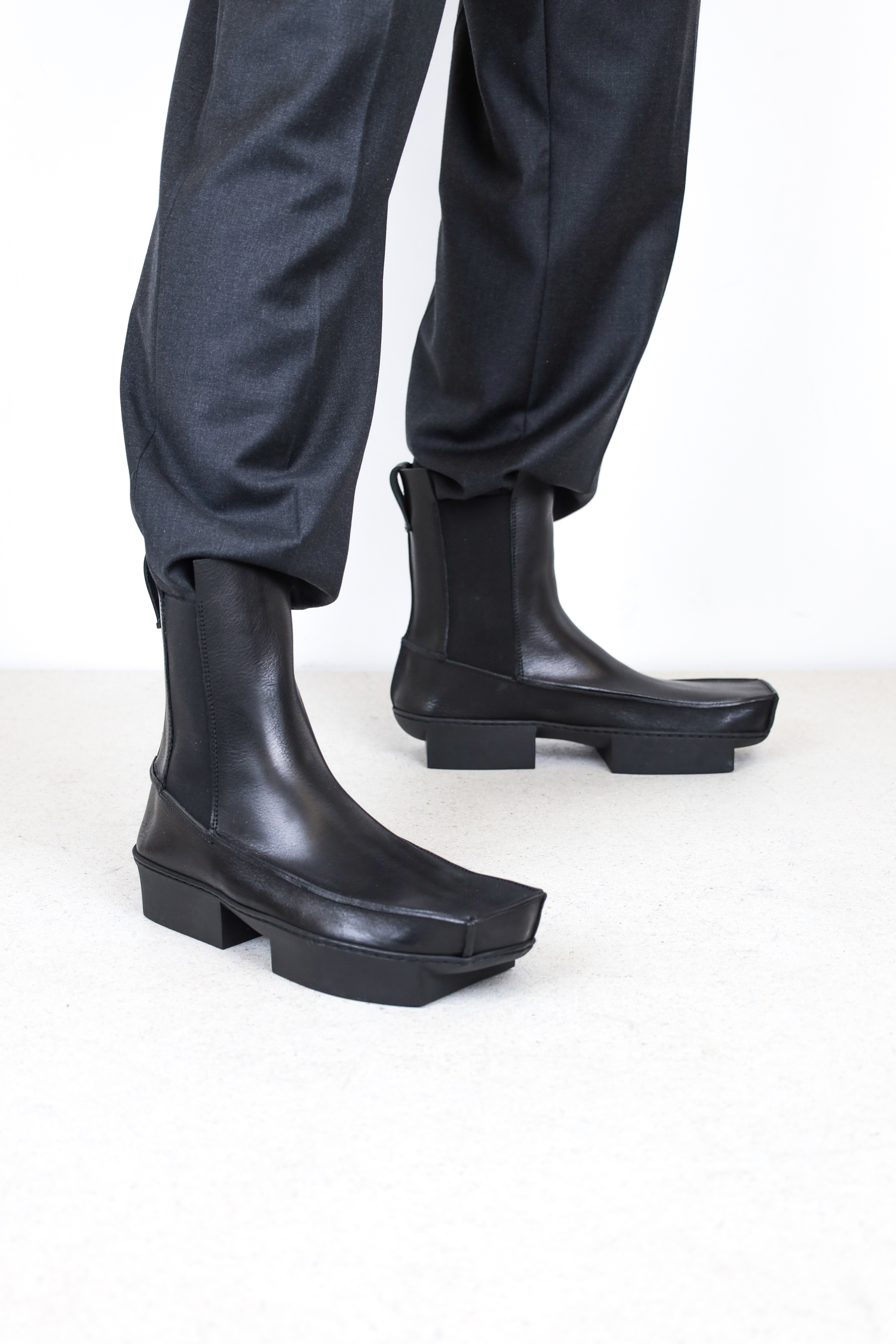 The pinch stitching, which runs at right angles over the toe and to the elasticated band and heel, gives the Chelsea a strict geometry.