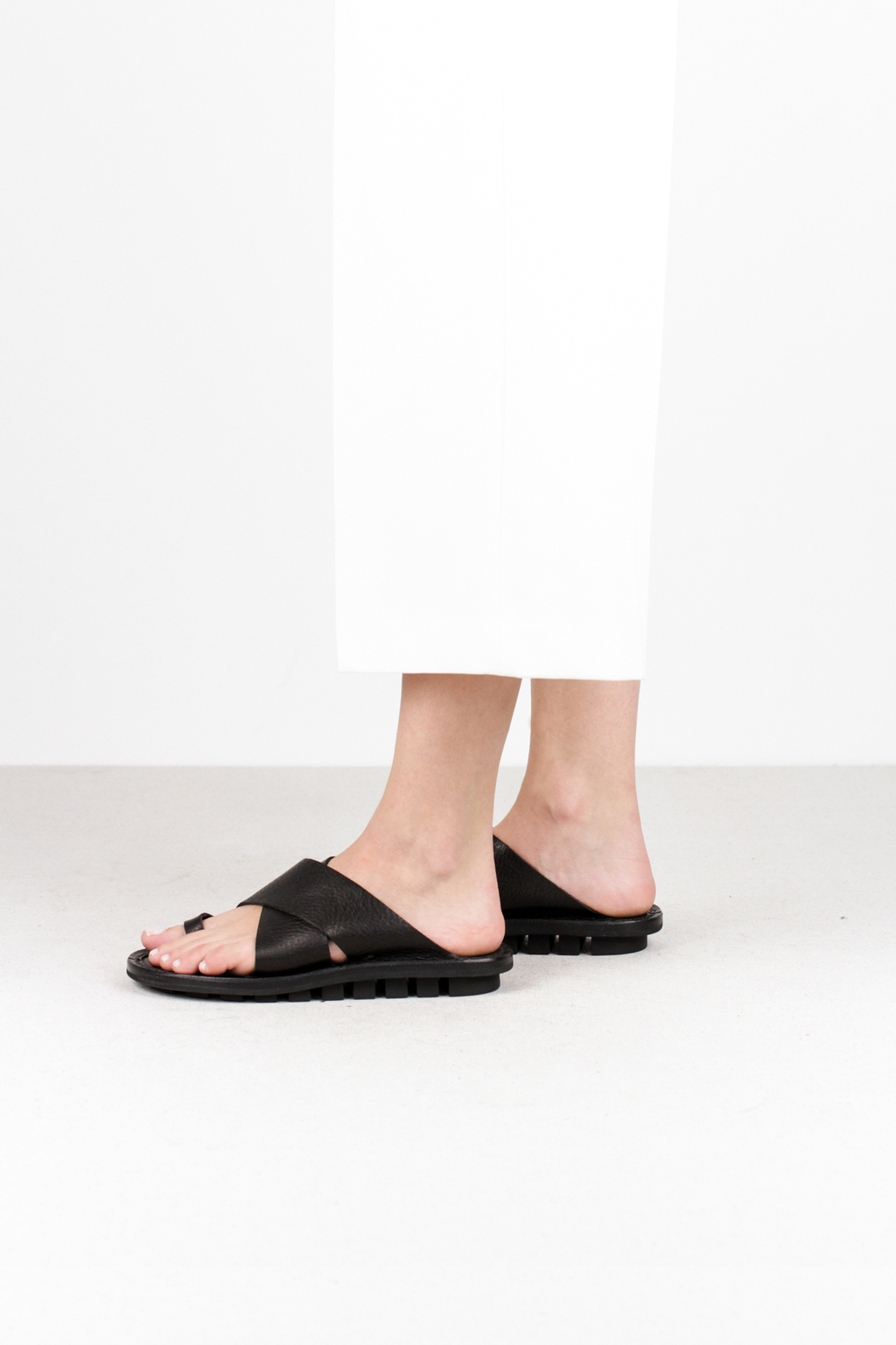 Alex is a simple thong mule featuring a classic cross strap. The flexible rod profile and soft leather footbed ensure that high wearing comfort is guaranteed during the summer months.