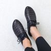 The striking holes on the instep of this casual unisex lace-up shoe provide ventilation.
