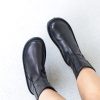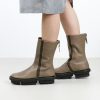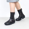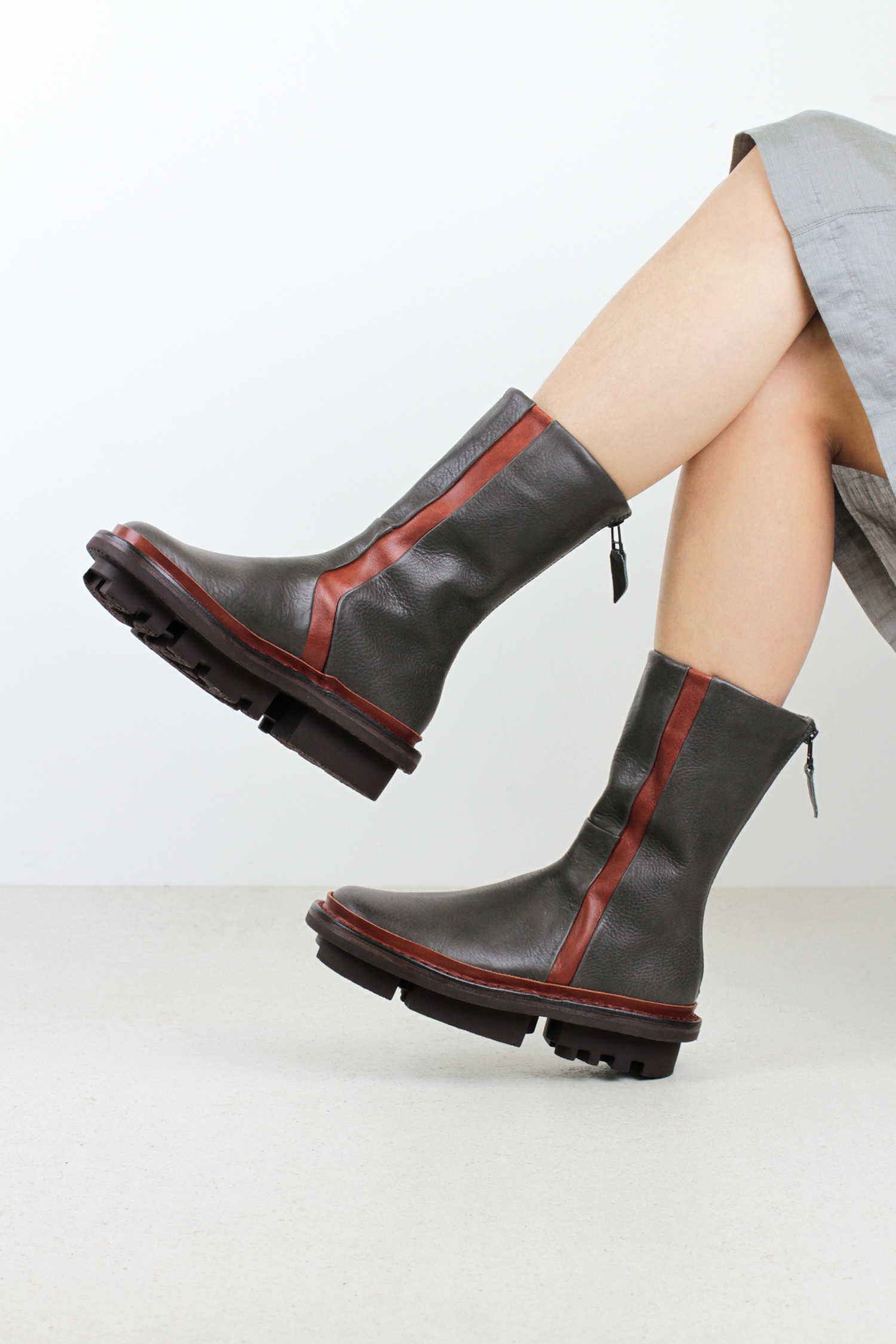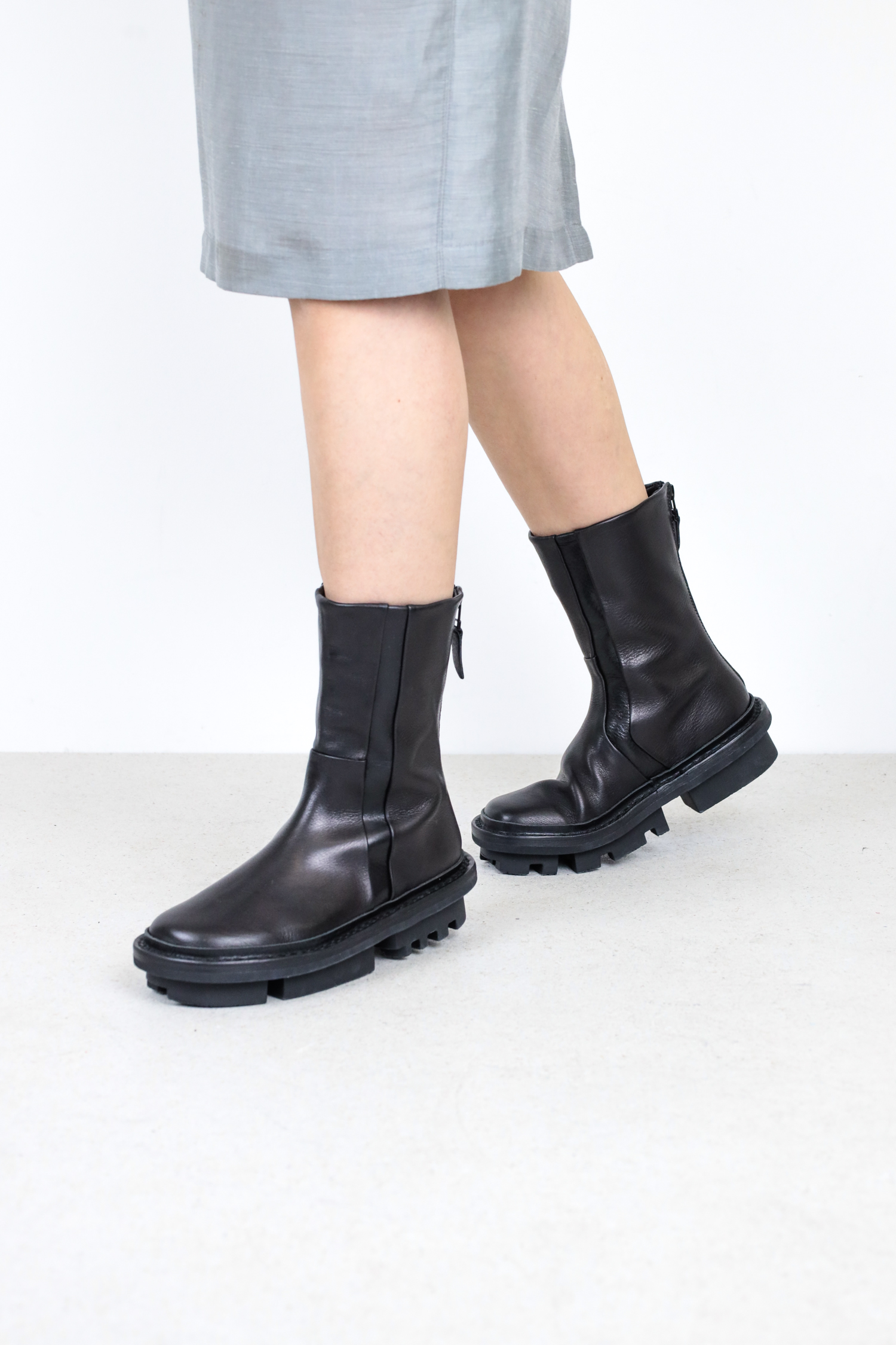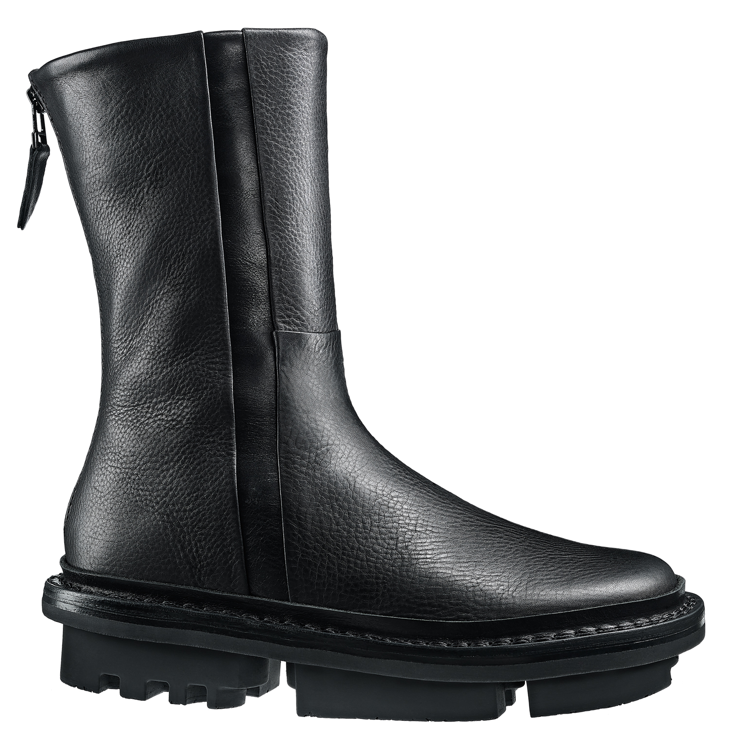 This minimalist unisex boot features asymmetric, vertical contrast lines up the sides, and is finished with a back zipper closure. The option of adding a warm fur lining is also possible for this style.