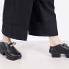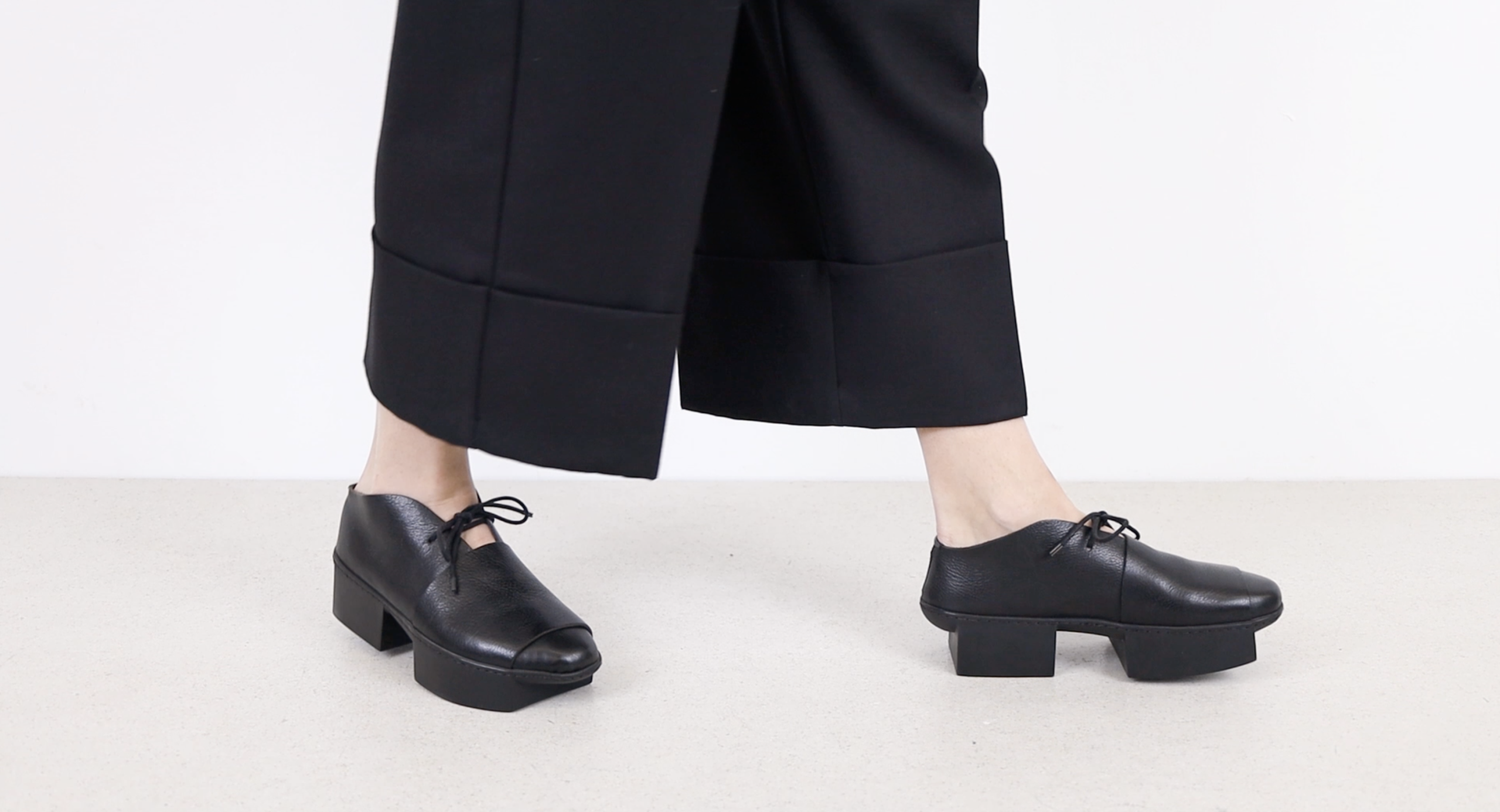 Minimalist lace-up shoe on the box sole with a graphic element on the front part.