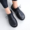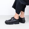 A square peels away from the toe, revealing the layer of this modern lace-up shoe underneath.