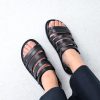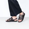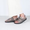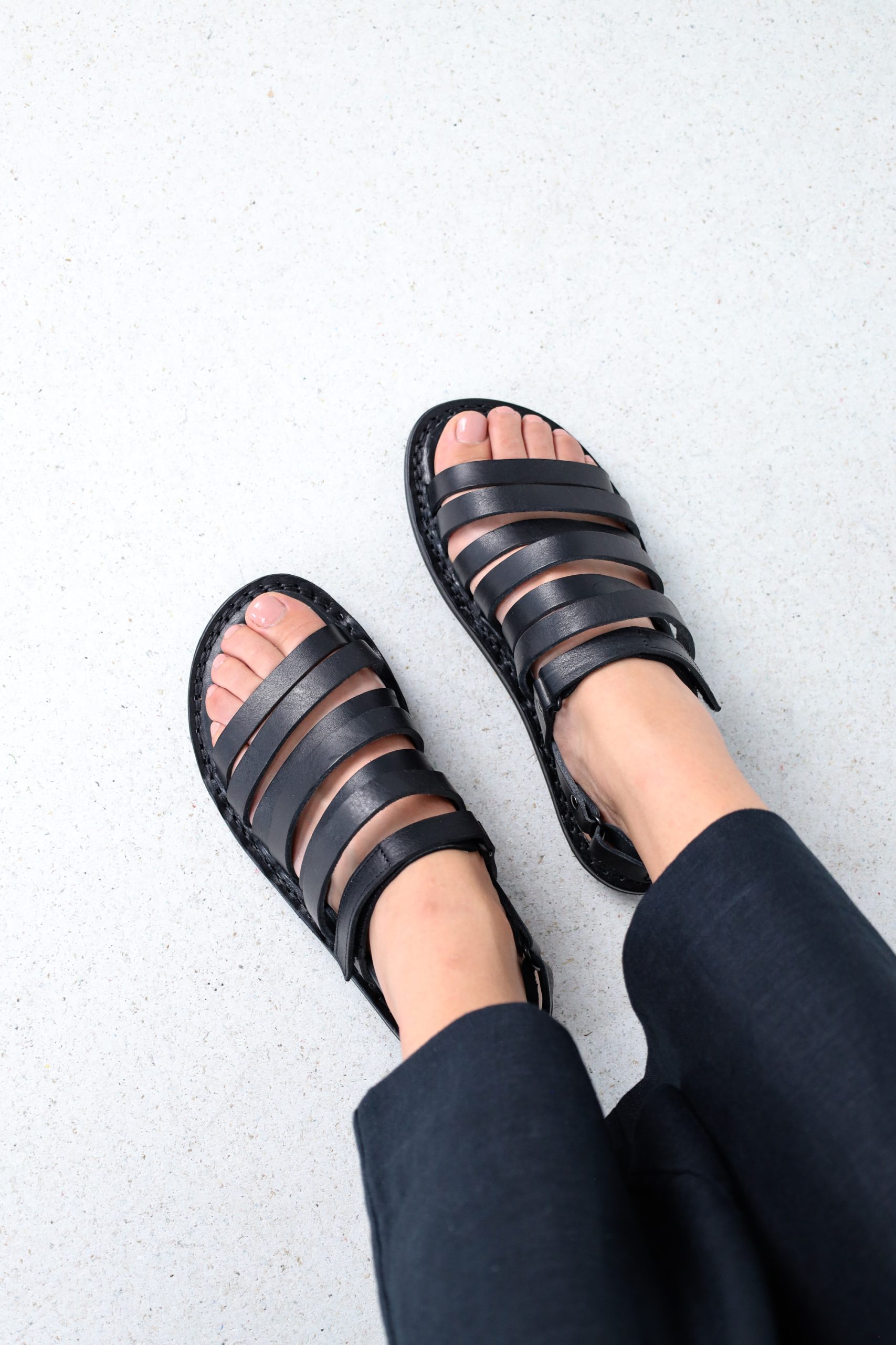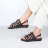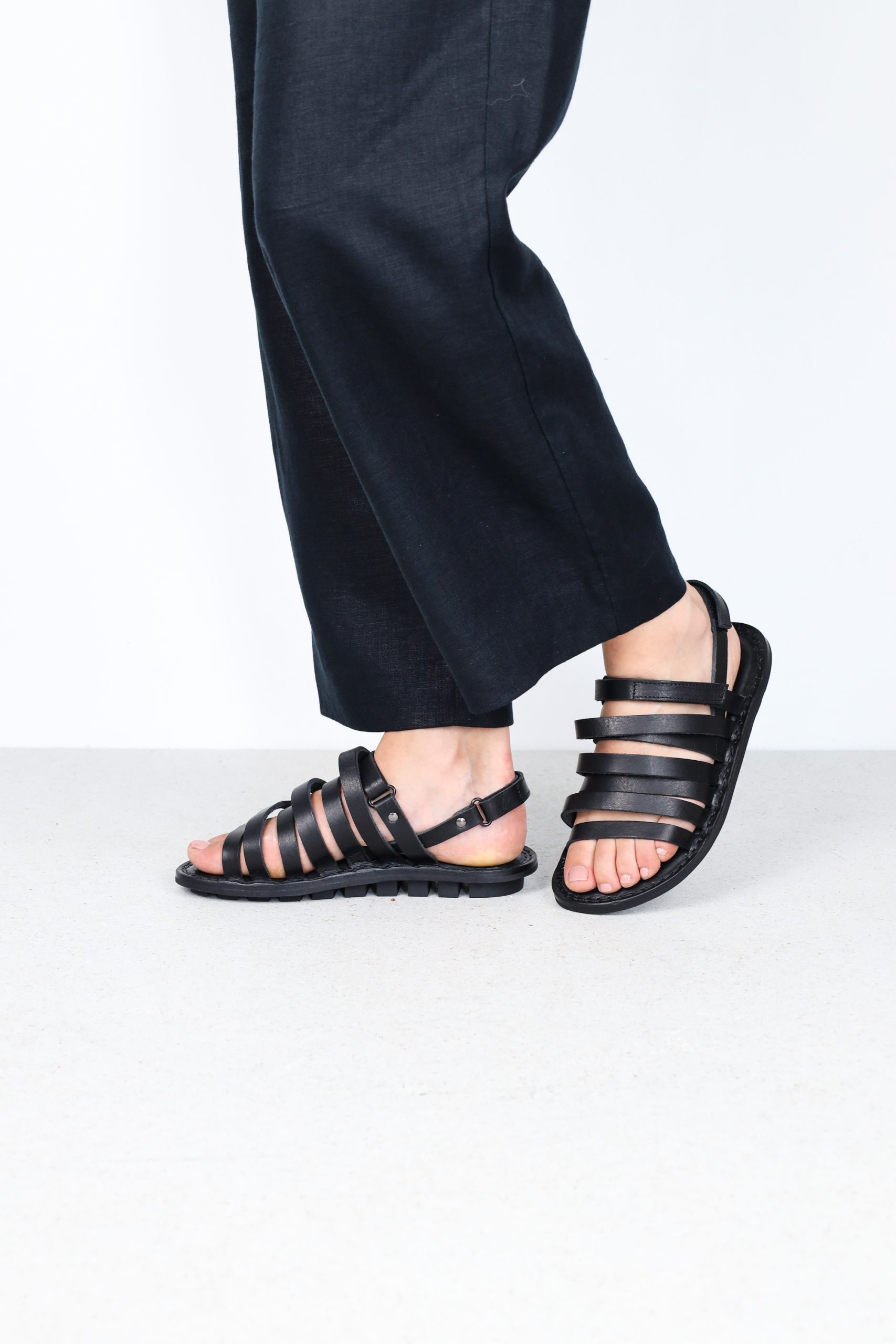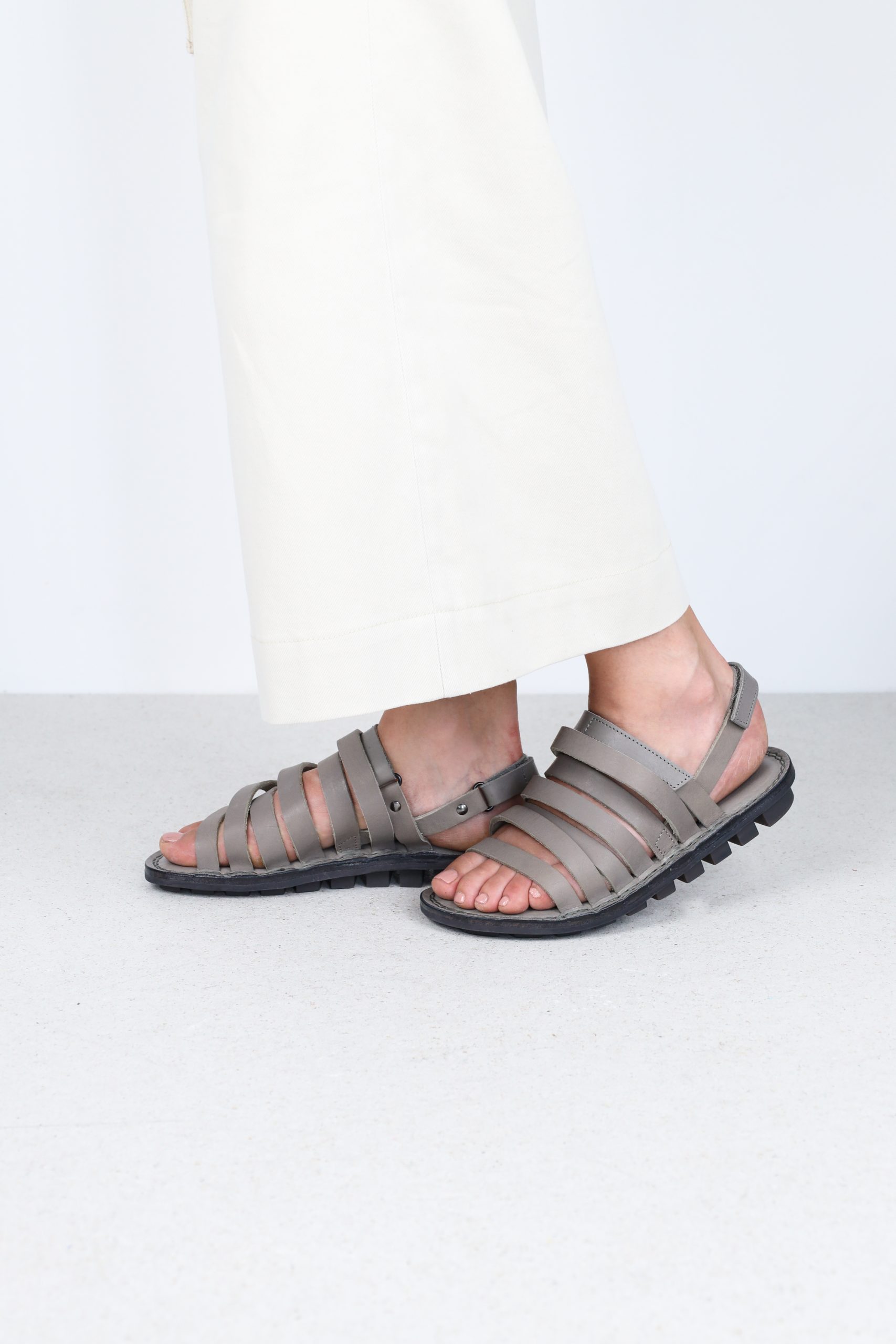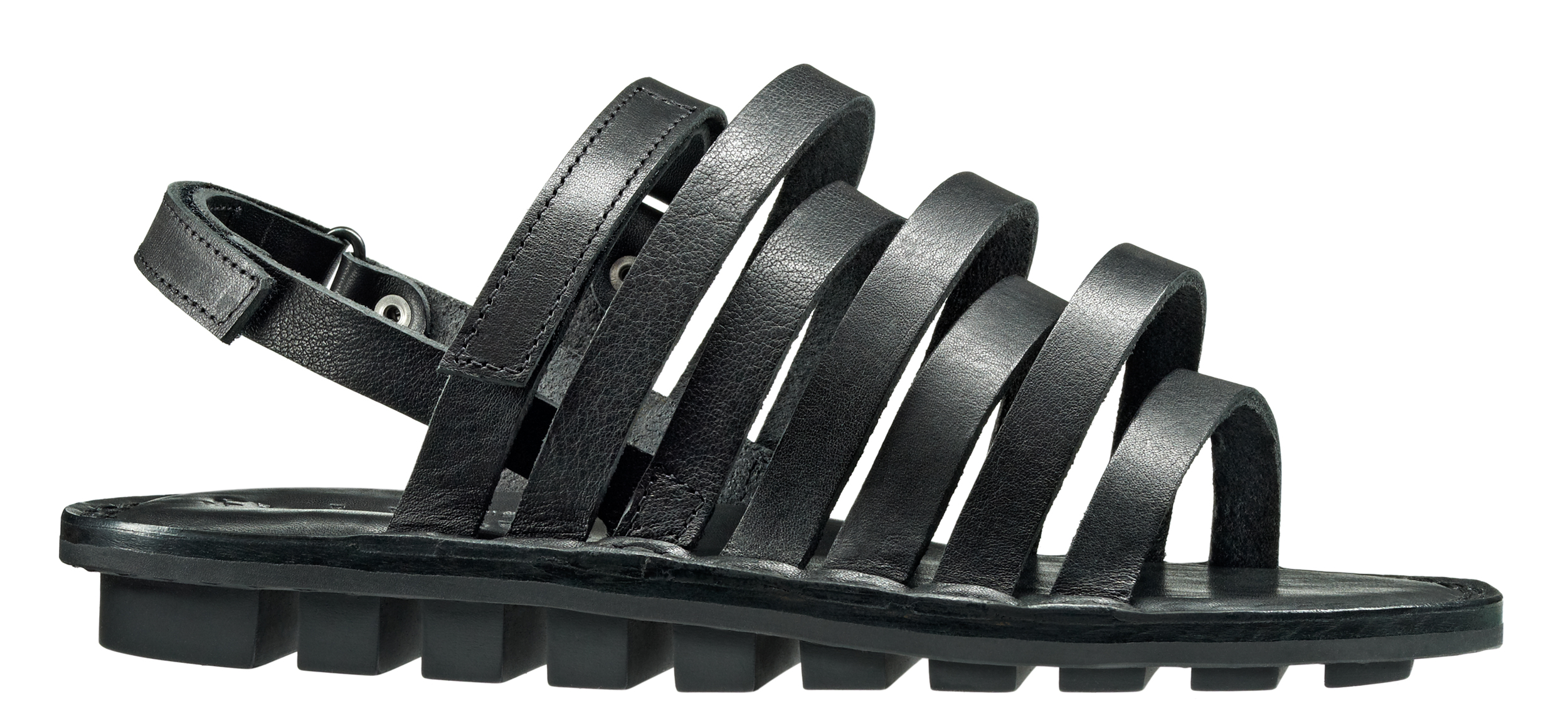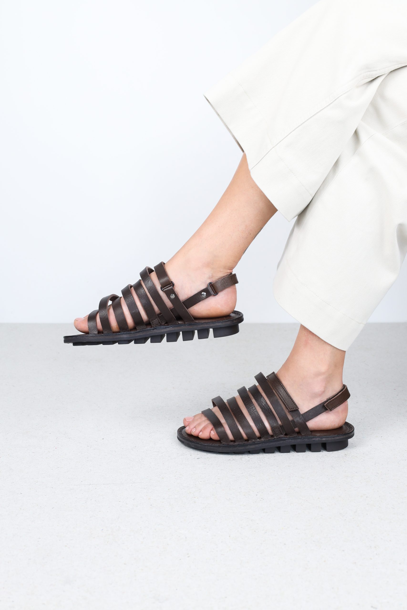 The centre section of this airy sandal is made up of straps that fit snugly and play around the foot.