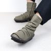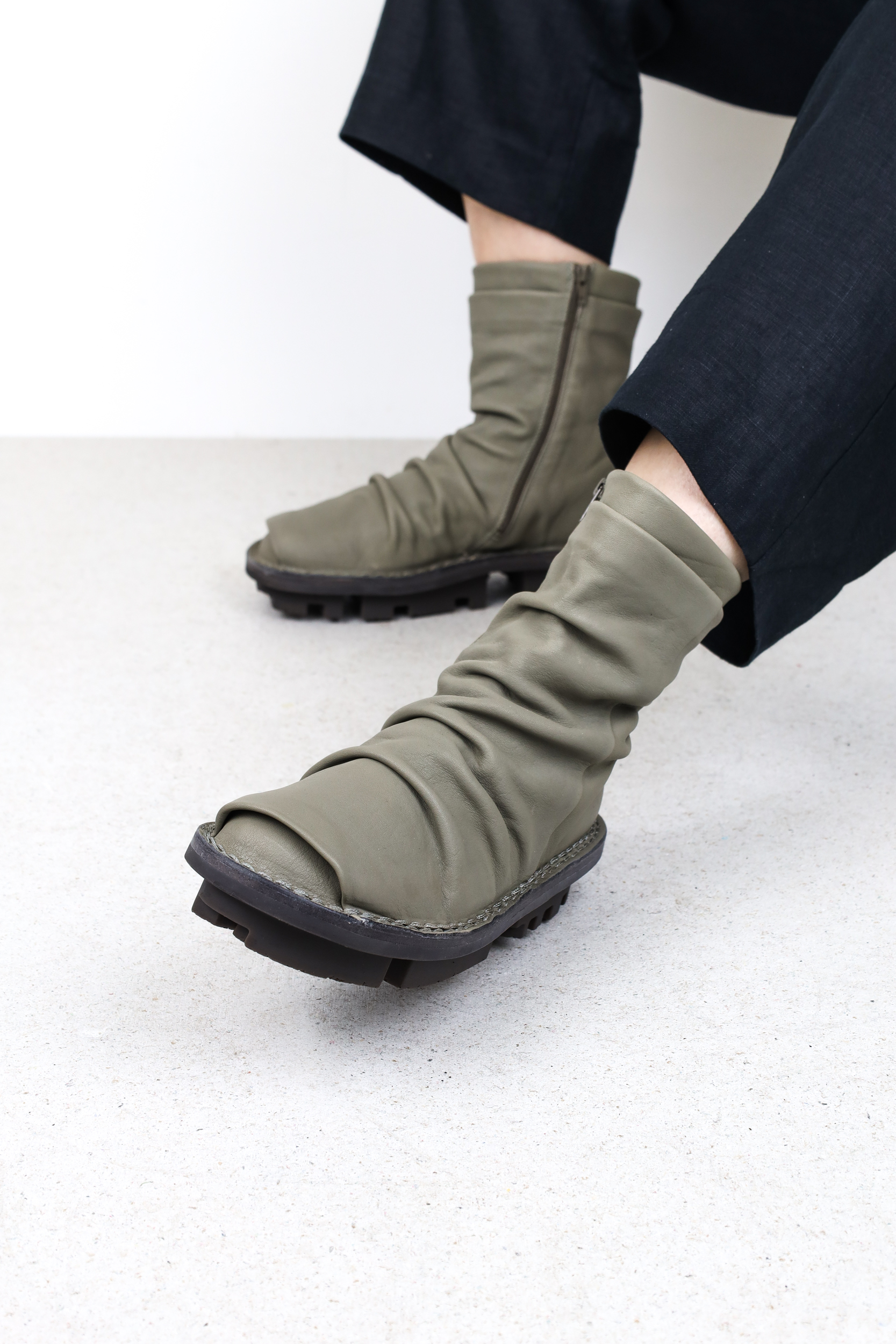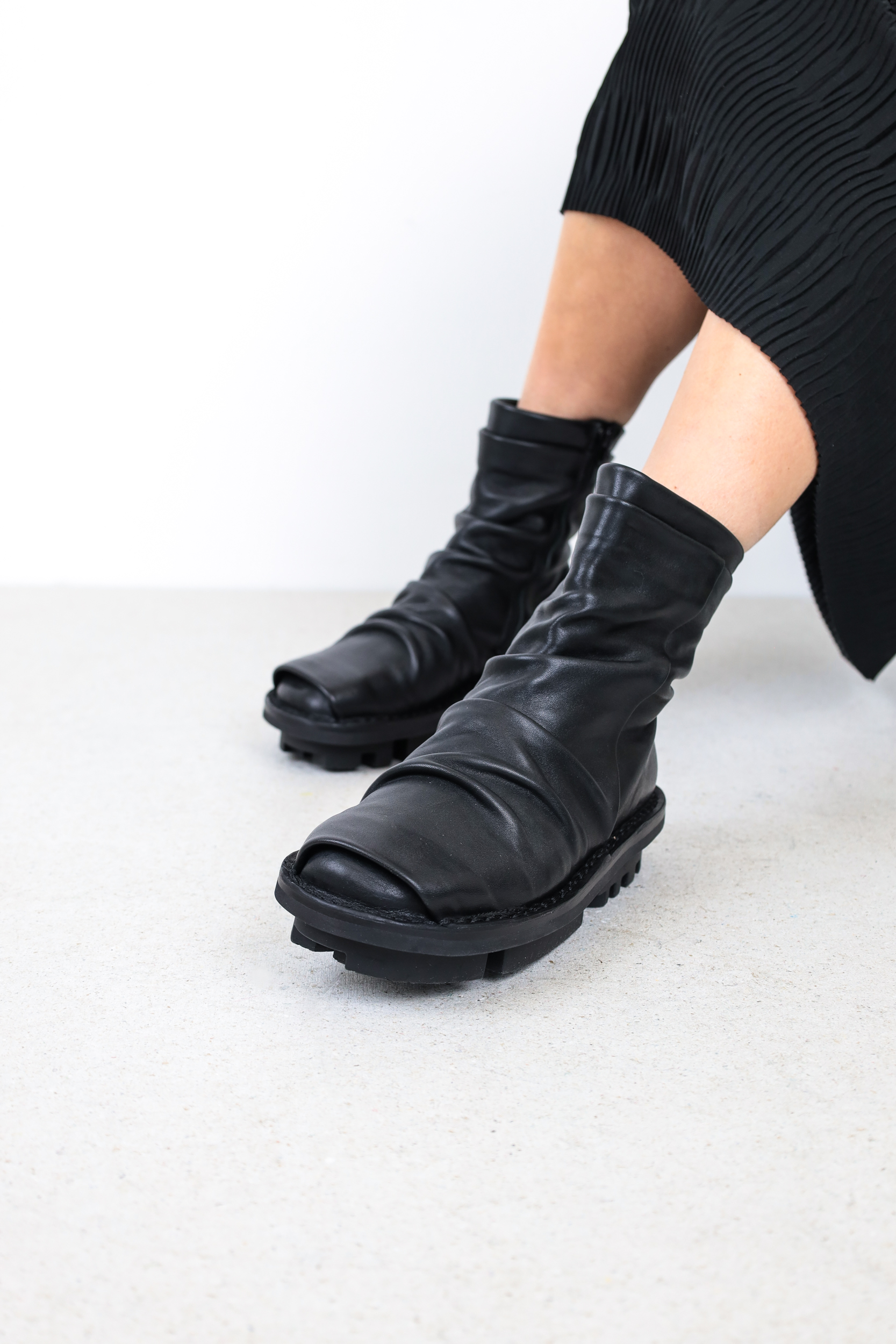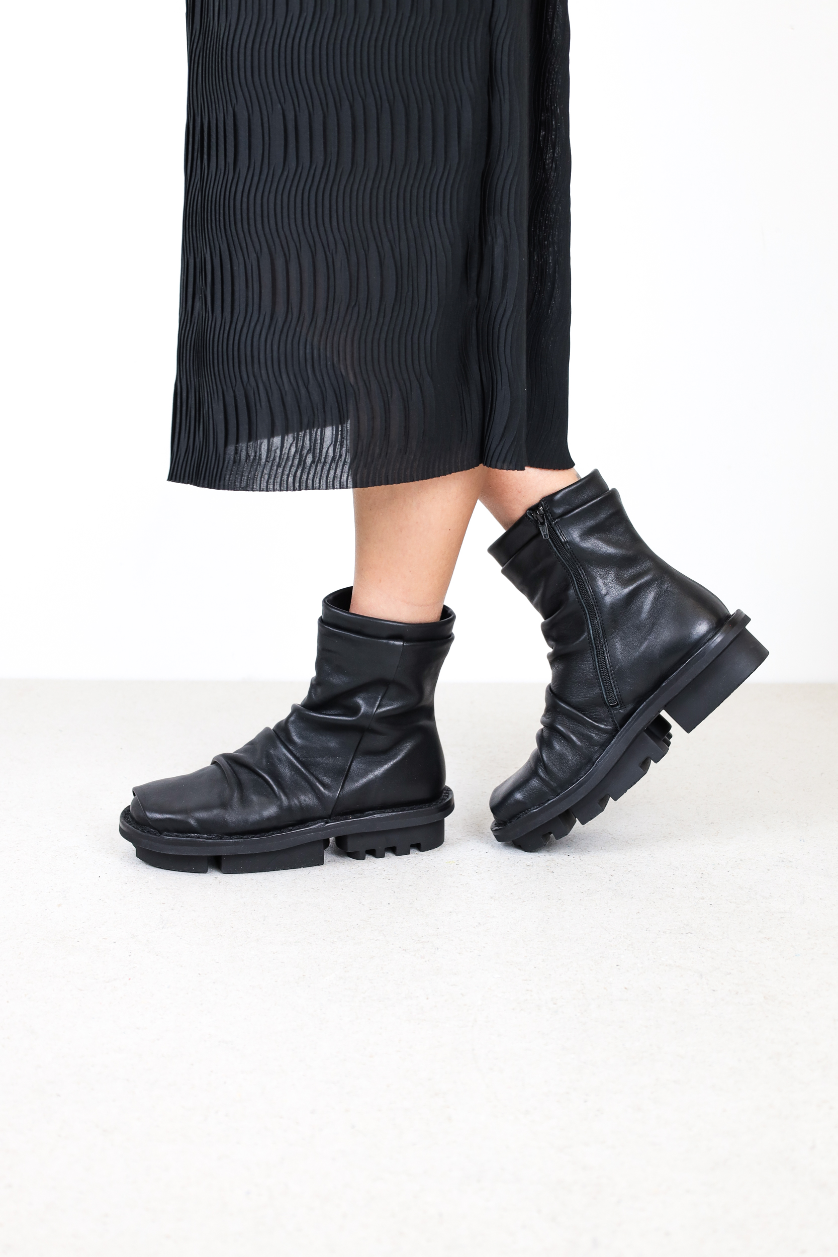 Between two simple folded edges over the toe and at the end of the shaft, the shaft lies in flowing folds.
