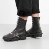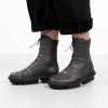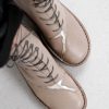 The seams of this mid-high lace-up boot are broken up and underlaid in contrasting colours.
