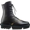 The seams of this mid-high lace-up boot are broken up and underlaid in contrasting colours.
