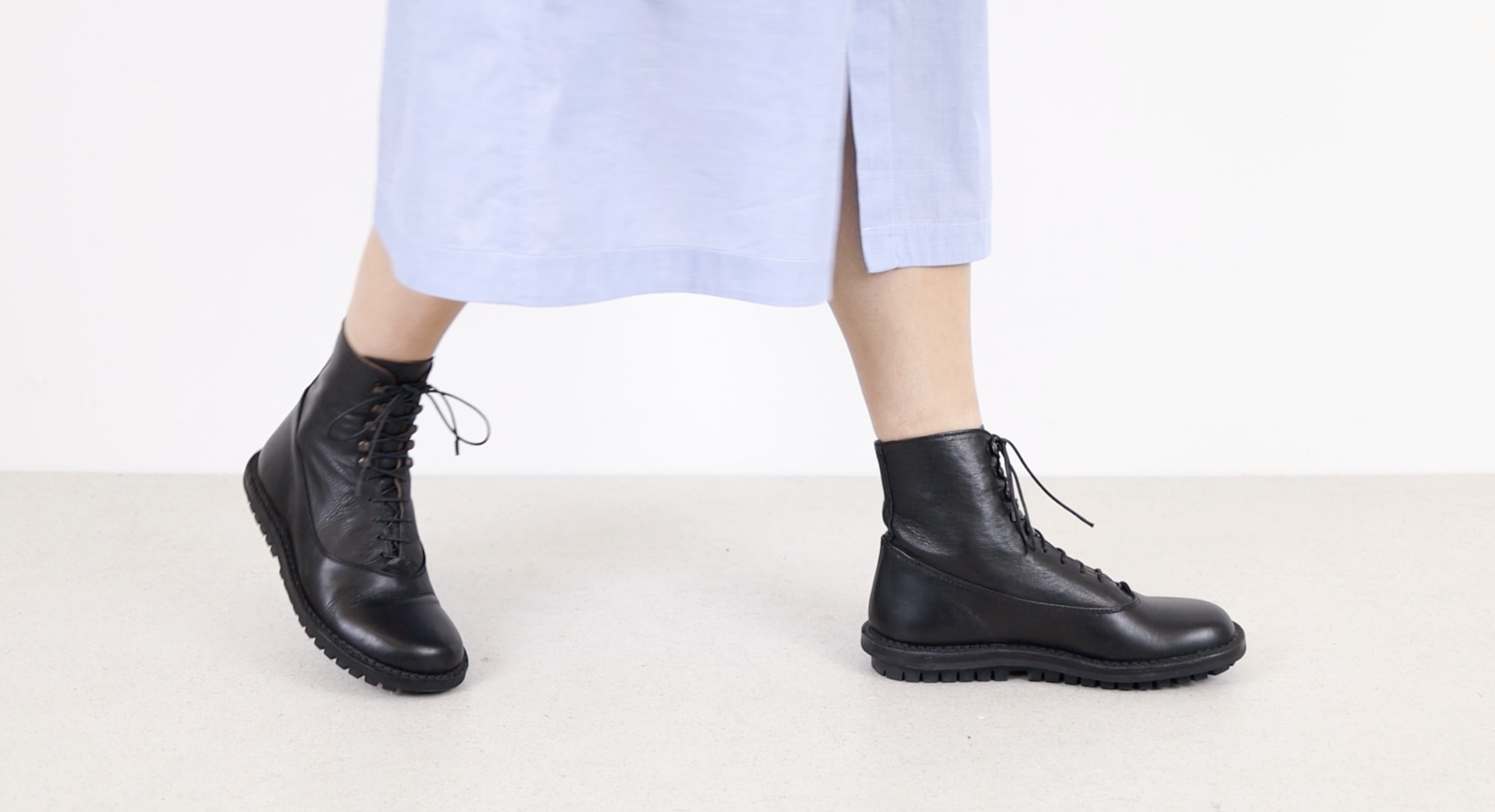 Classic lace-up boots with hooklets.