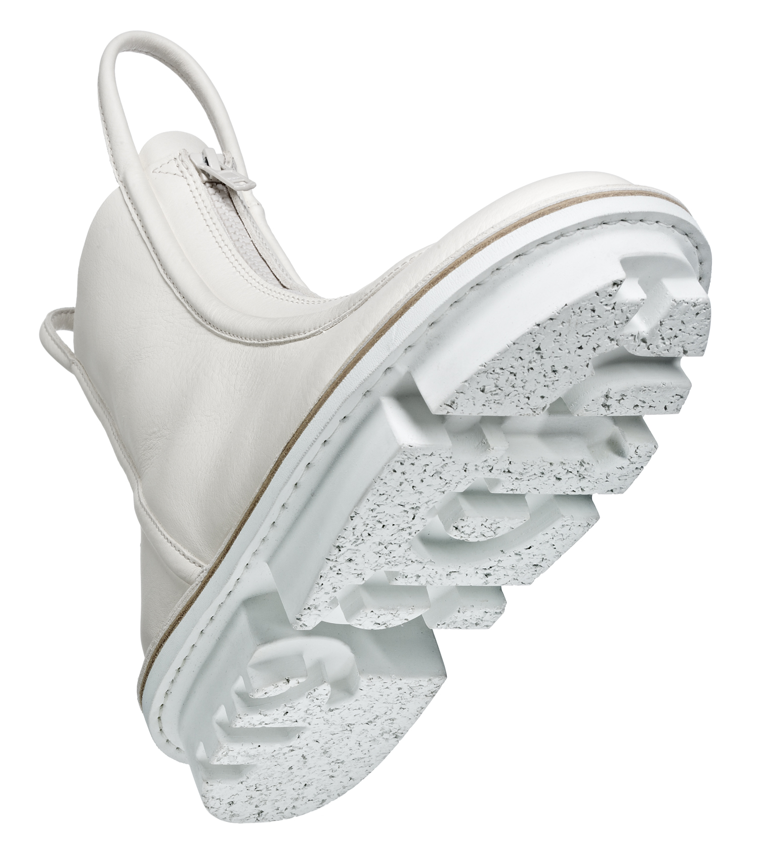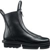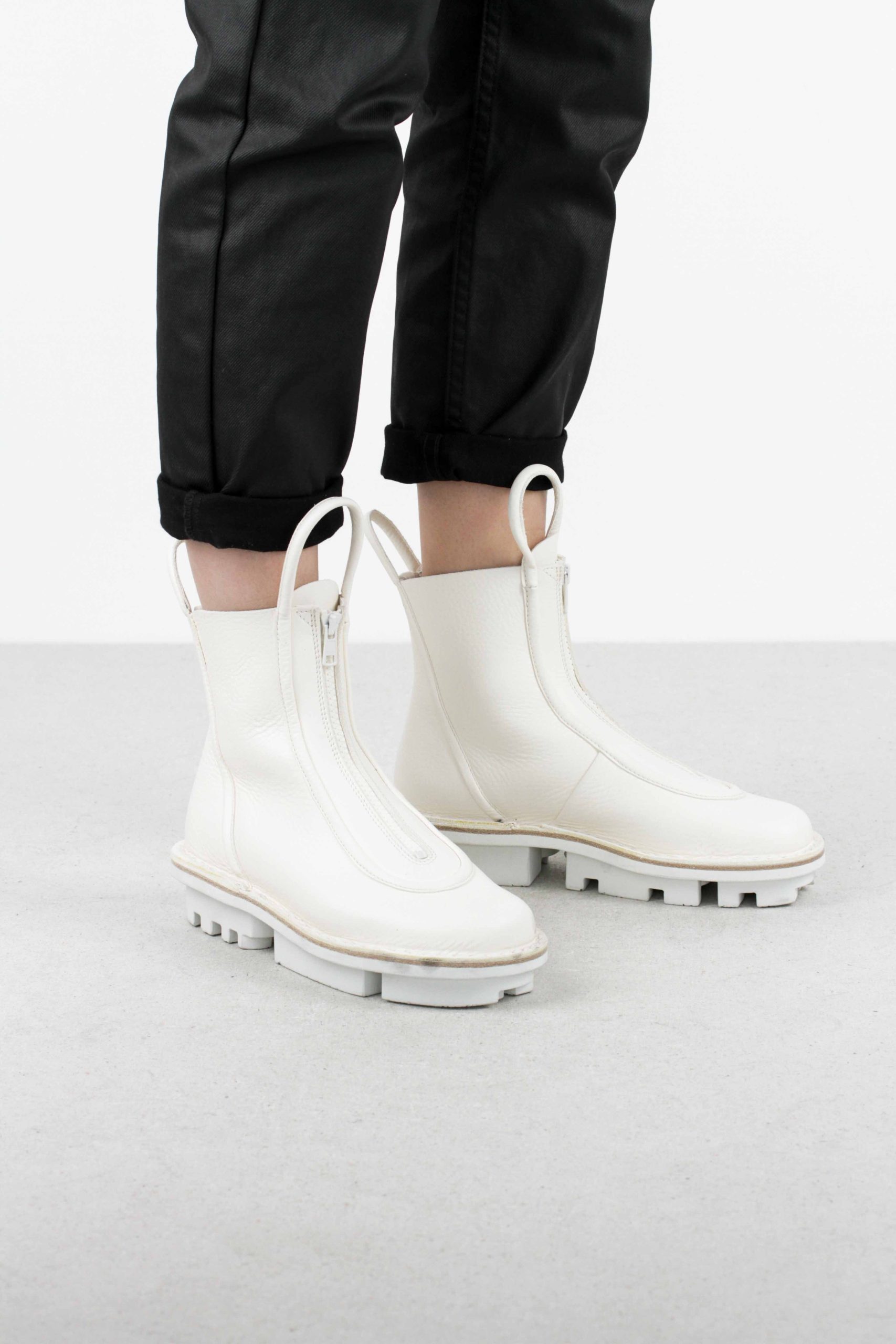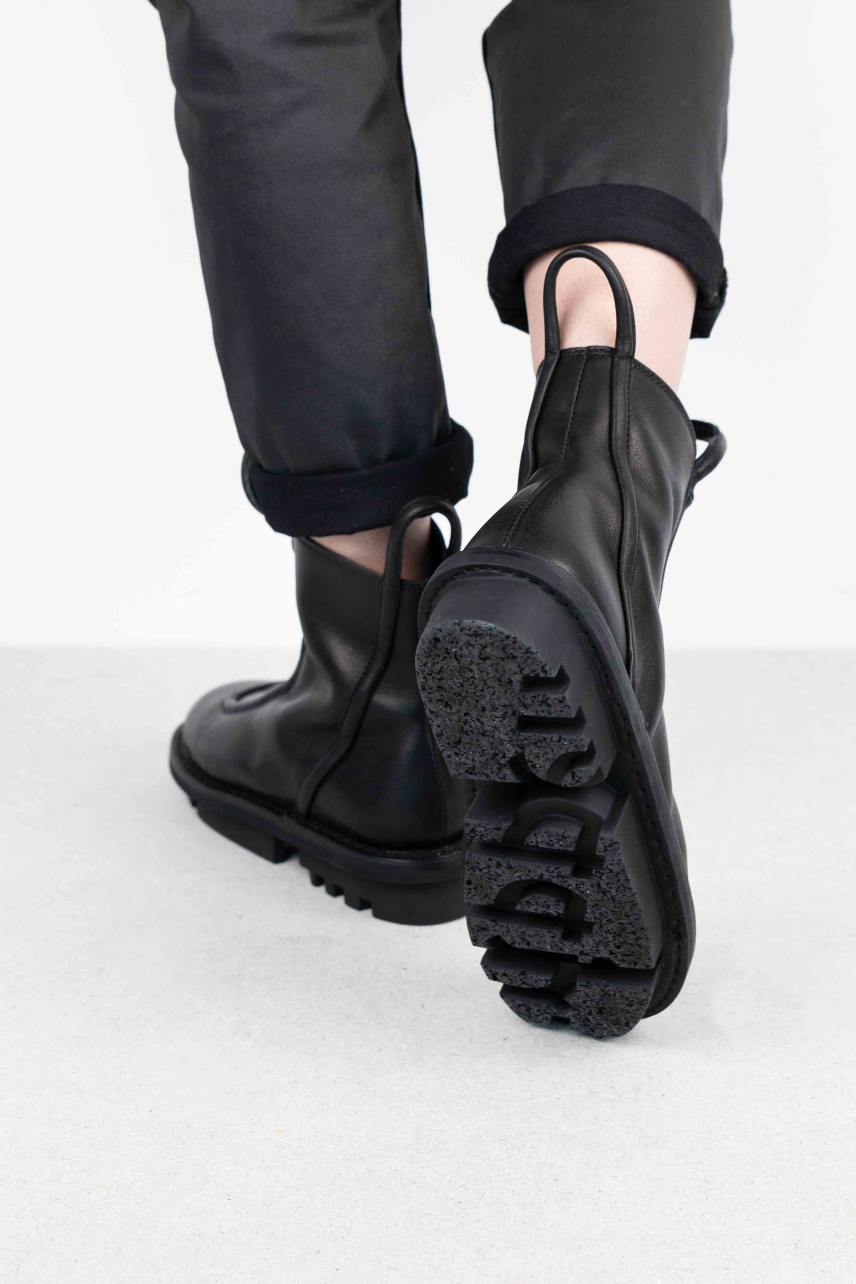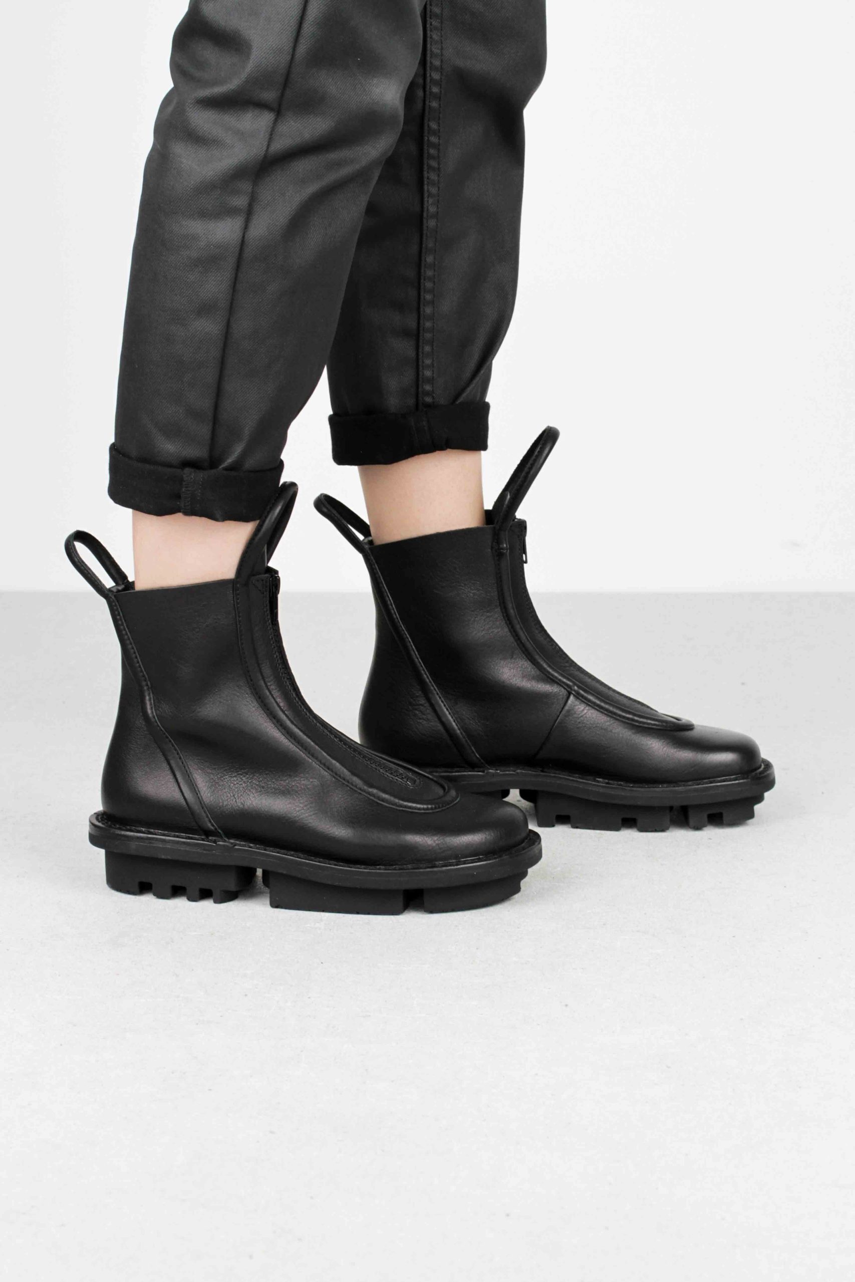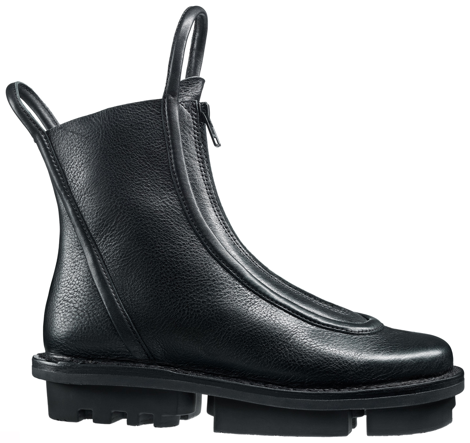 The zip leading over the instep and the heel is framed by leather piping which merges to provide generous access to the boot.
