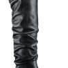 This thigh-high boot is flexible and loose-fitting, with an elastic that creates a ruched effect and provides more space in the leg of the boot.