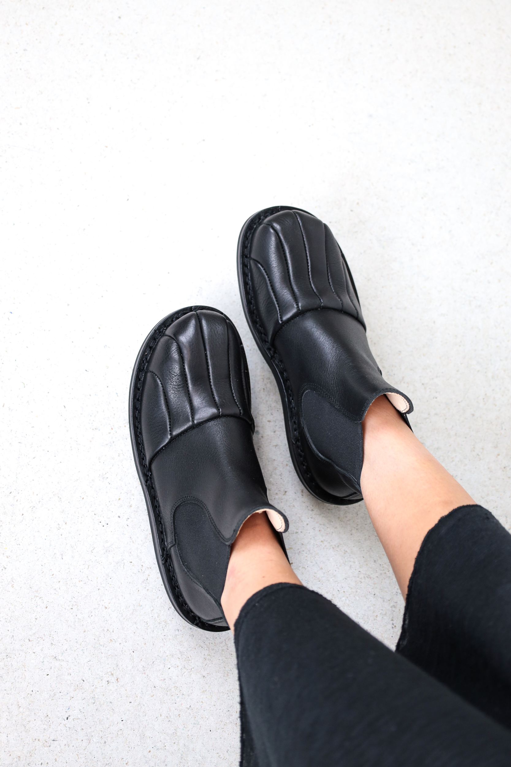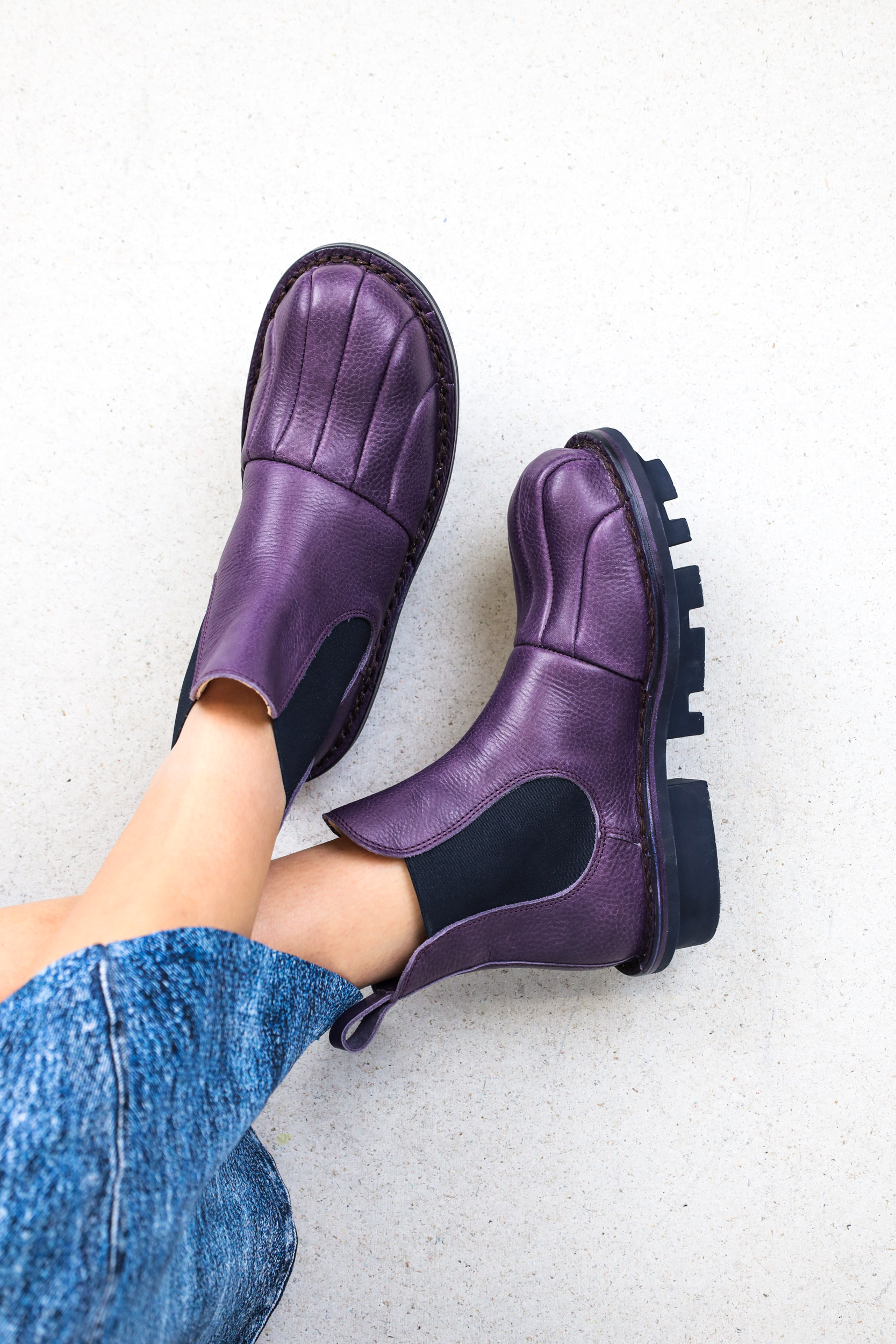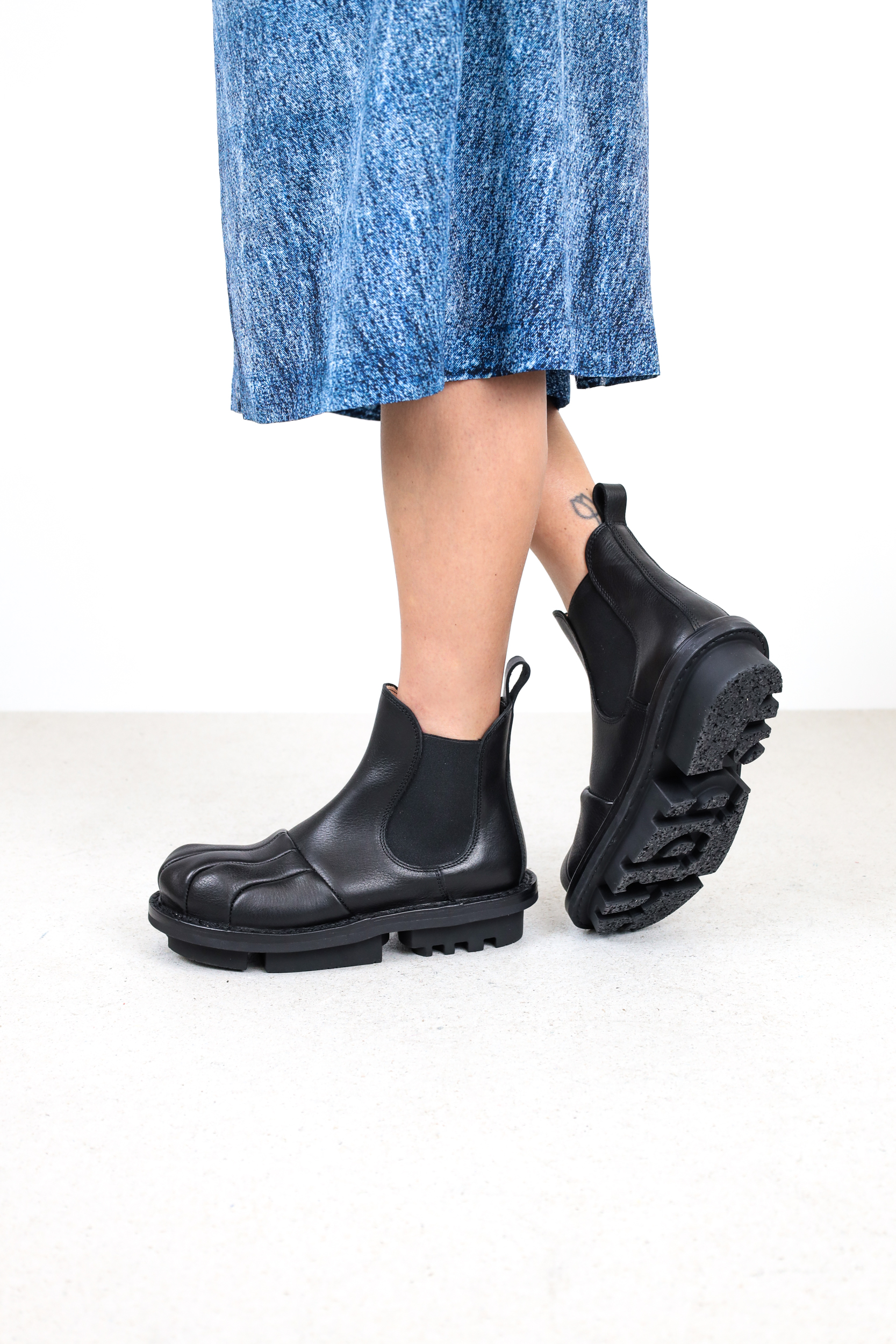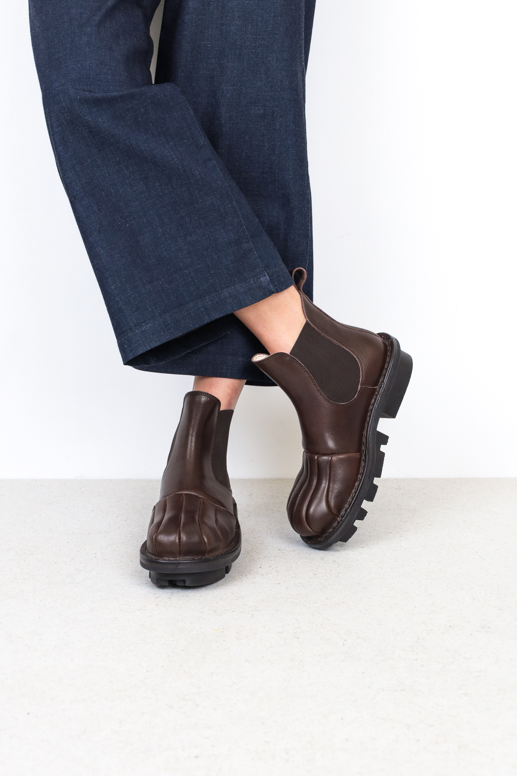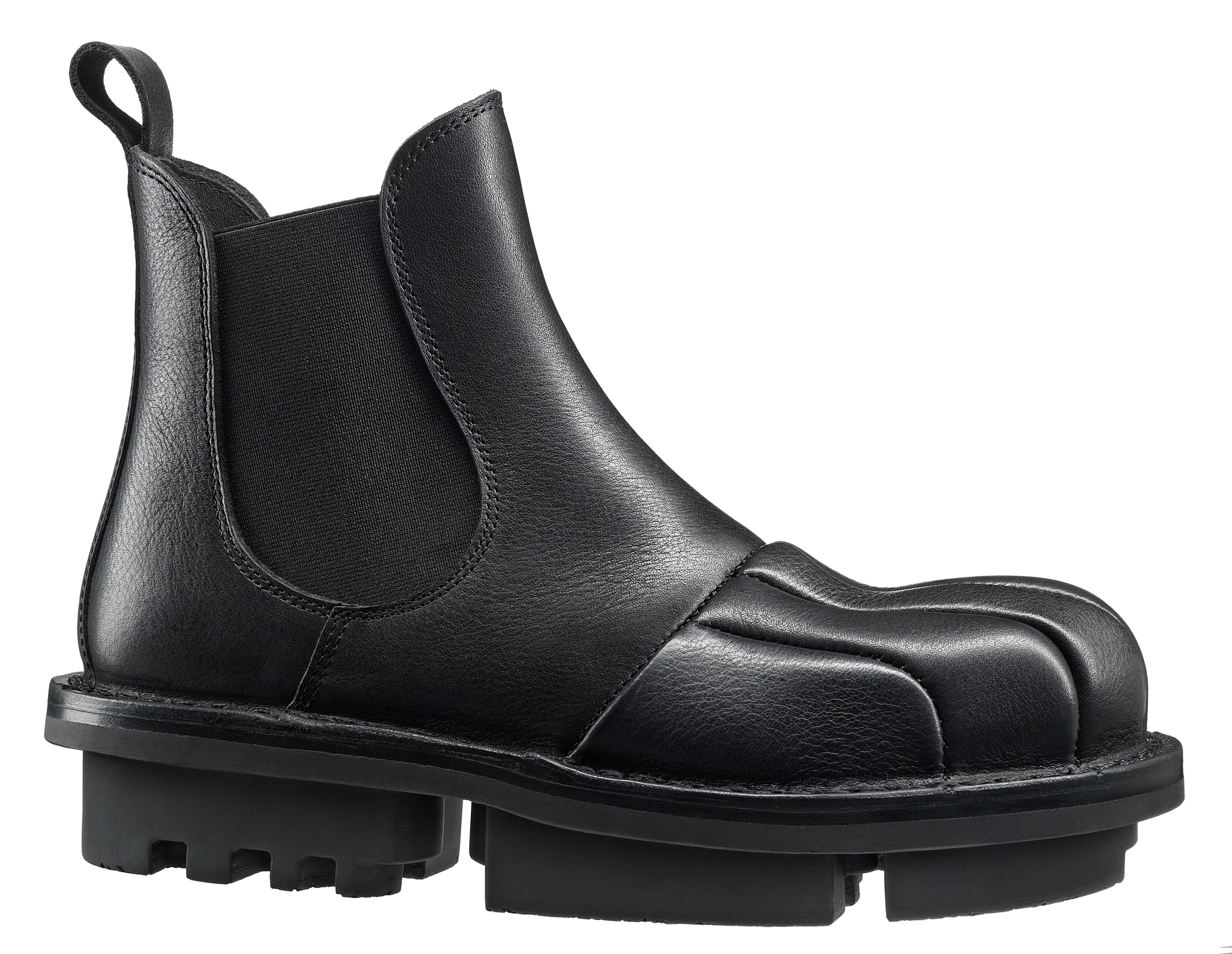 The finely crafted, flowing overdrawing of the cap section gives this Chelsea boot a special silhouette.