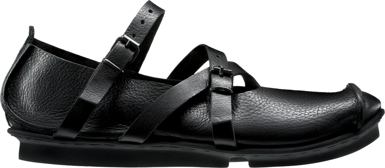 Plain shoe with small square tip and excellent fit. Thanks to the buckle fastenings the three narrow straps can be adjusted time and again.