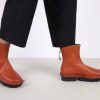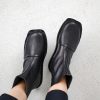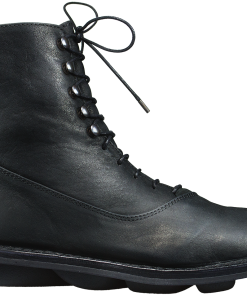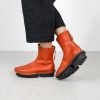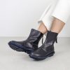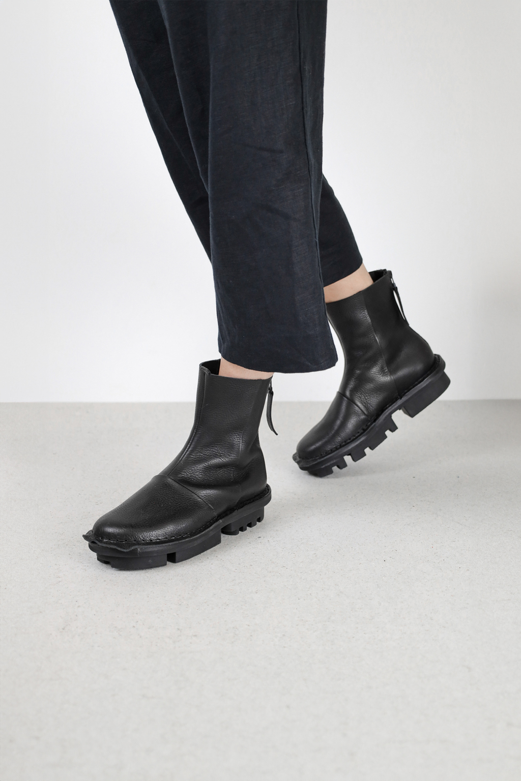The overlapping leather layer at the front of this boot flows over the natural rounded toe shape and forms a soft square. A zipper at the centre back closes the simple shaft.