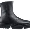 The overlapping leather layer at the front of this boot flows over the natural rounded toe shape and forms a soft square. A zipper at the centre back closes the simple shaft.